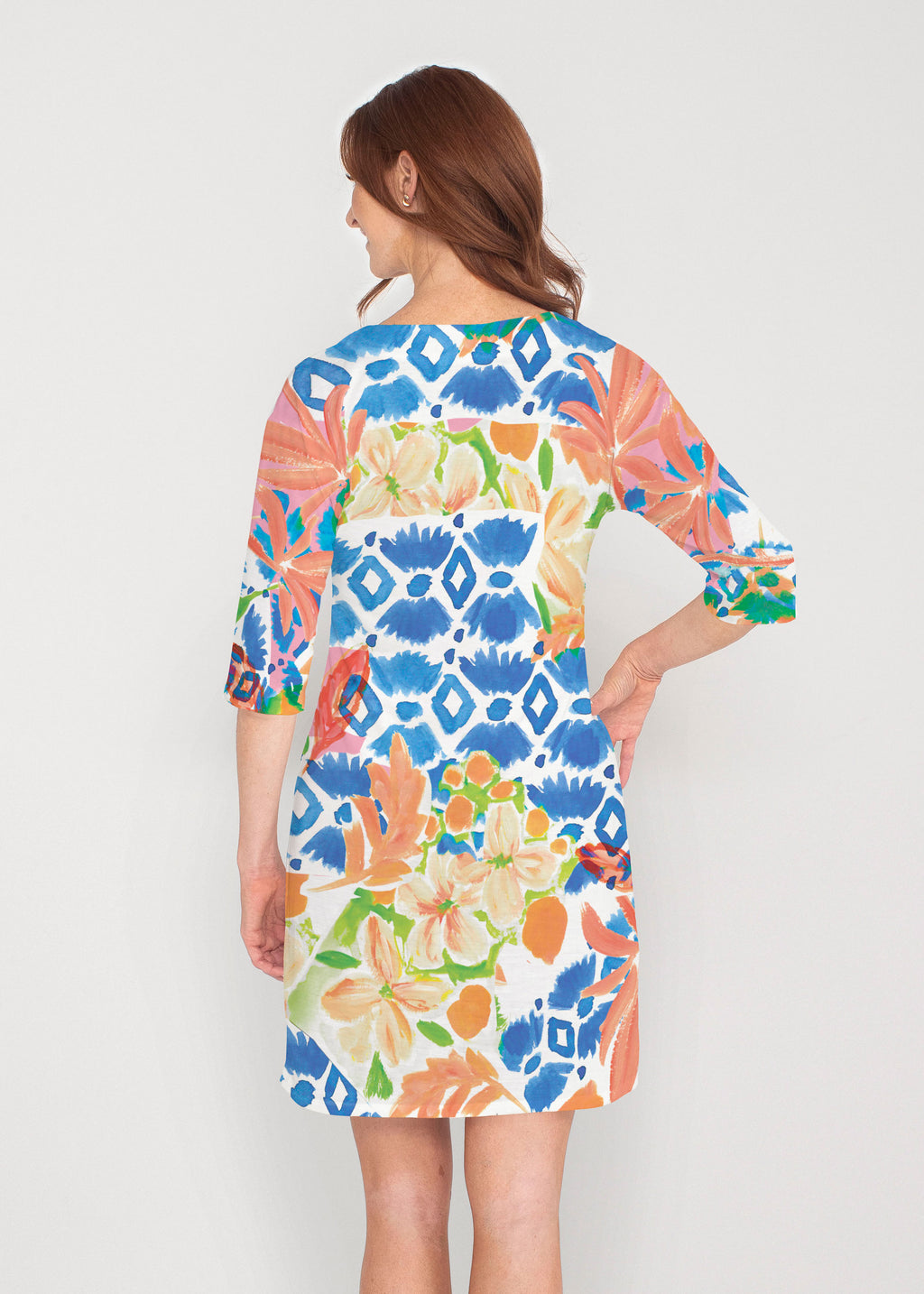 Be comfortable and fashionable all day in our soft Lucy fabric. This v-neck dress features loose 3/4 sleeves, drop shoulders and falls just at the knee.