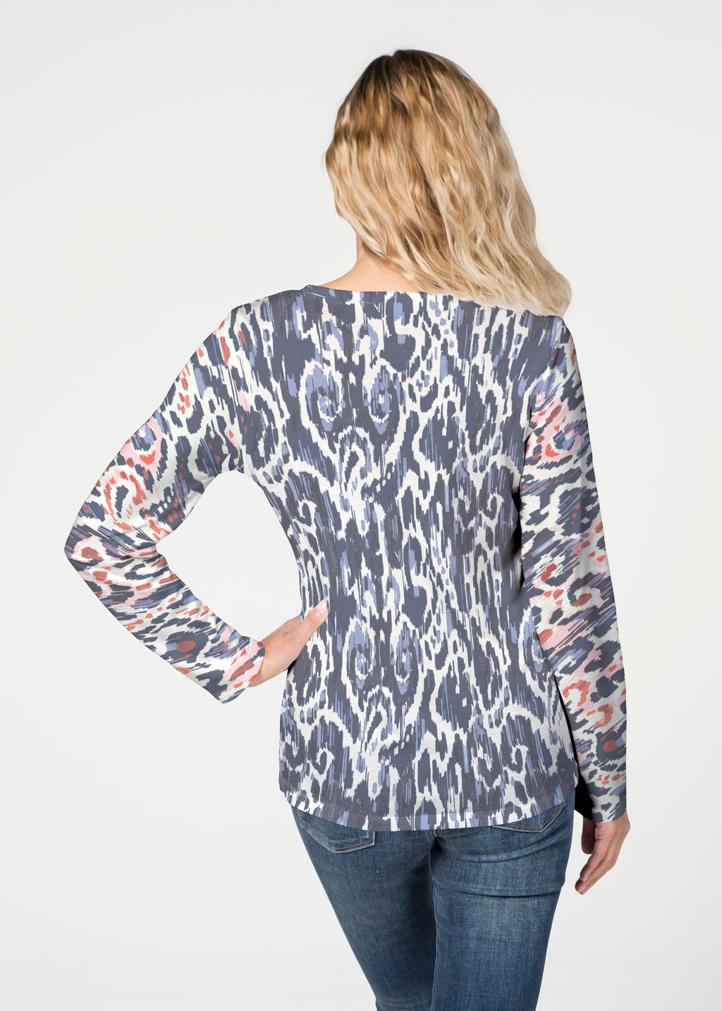 Our French Terry top is comfort and style all in one! Our French Terry top that features long sleeves, a V-neck and a more fitted silhouette that looks stylish in any print.