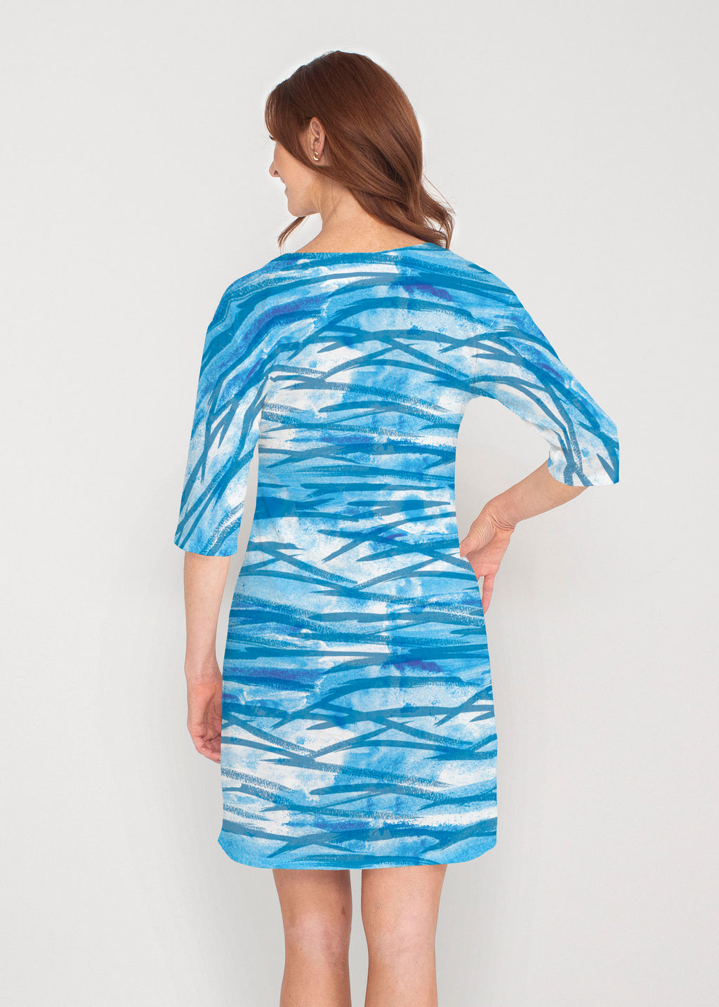 Be comfortable and fashionable all day in our soft Lucy fabric. This v-neck dress features loose 3/4 sleeves, drop shoulders and falls just at the knee.
