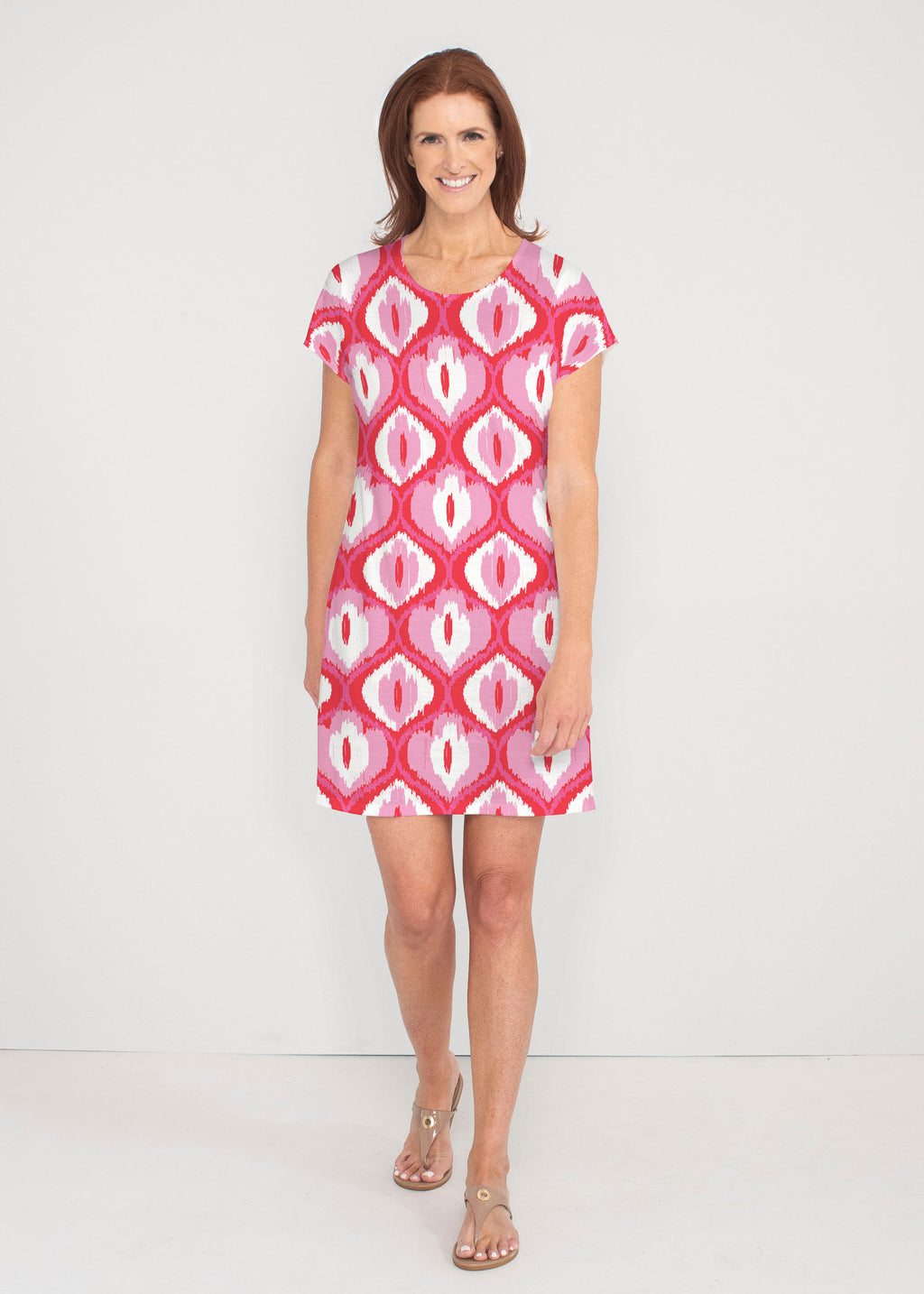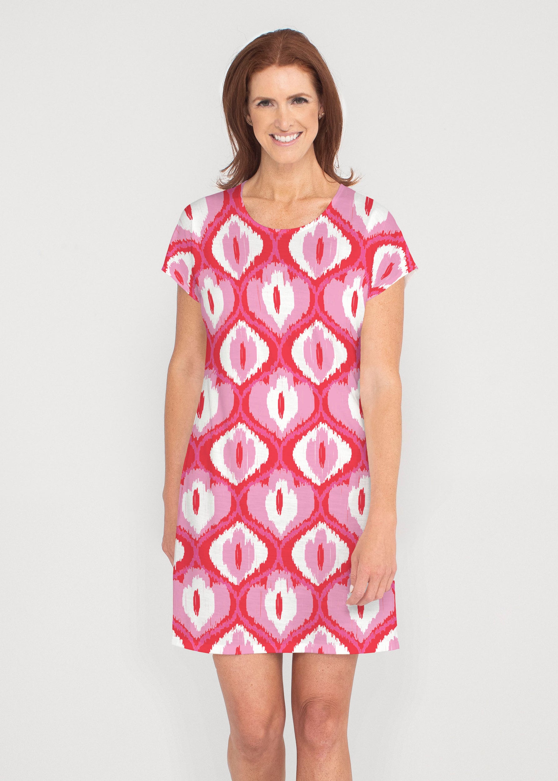 Our Lucy Tee Dress is effortless, versatile and soft to the touch -- perfect for all day style and comfort. A soft crew neckline, seamless sleeve and a relaxed shape made in our vibrant Lucy fabric ends above the knee.