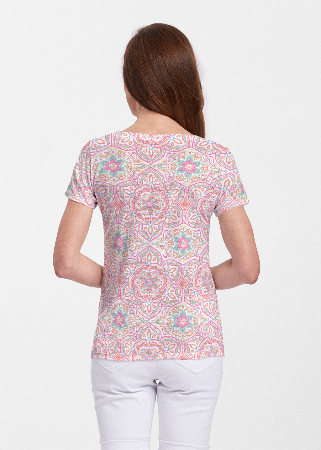 • Mandala Geo (13495) ~ Sheer Short Sleeve V-Neck Shirt