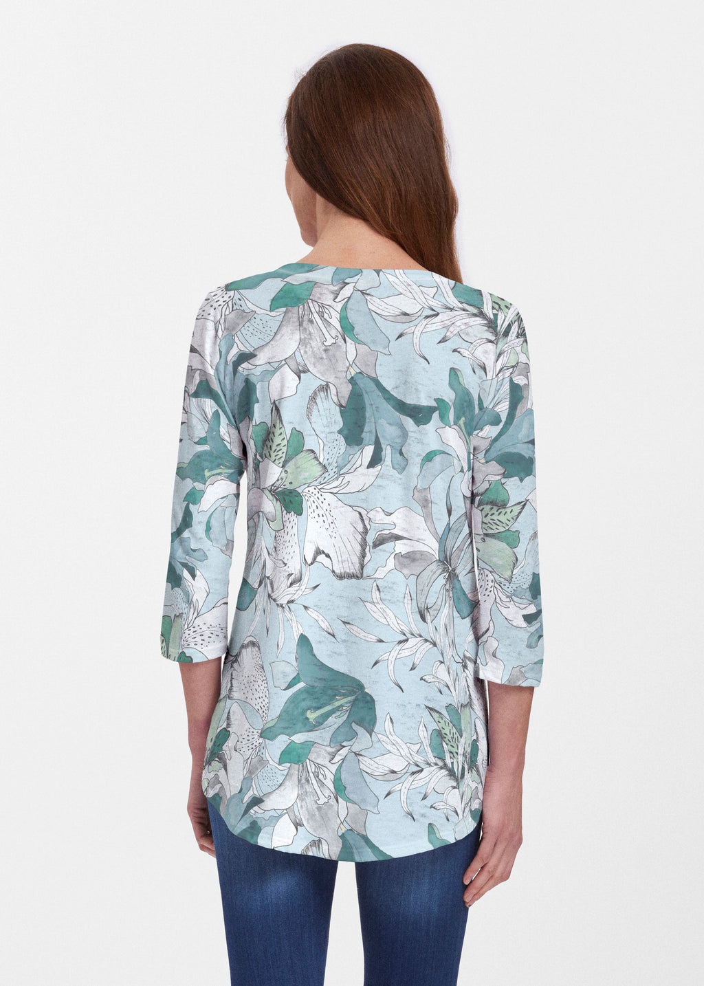 Pen and Ink Lily Seafoam (7621) ~ Signature V-neck Flowy Tunic
