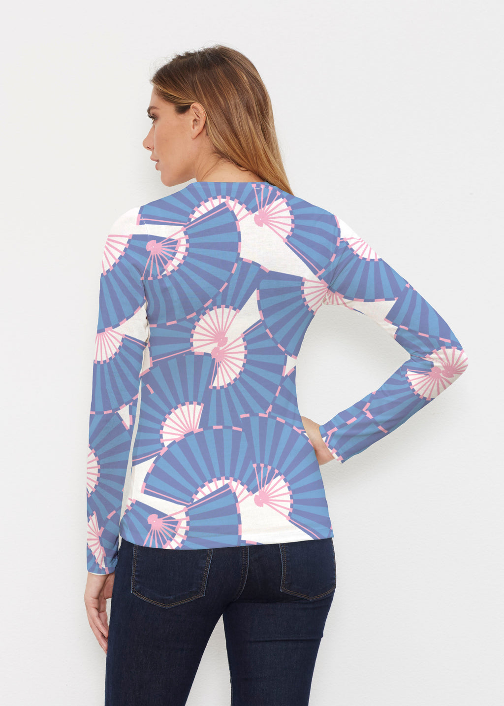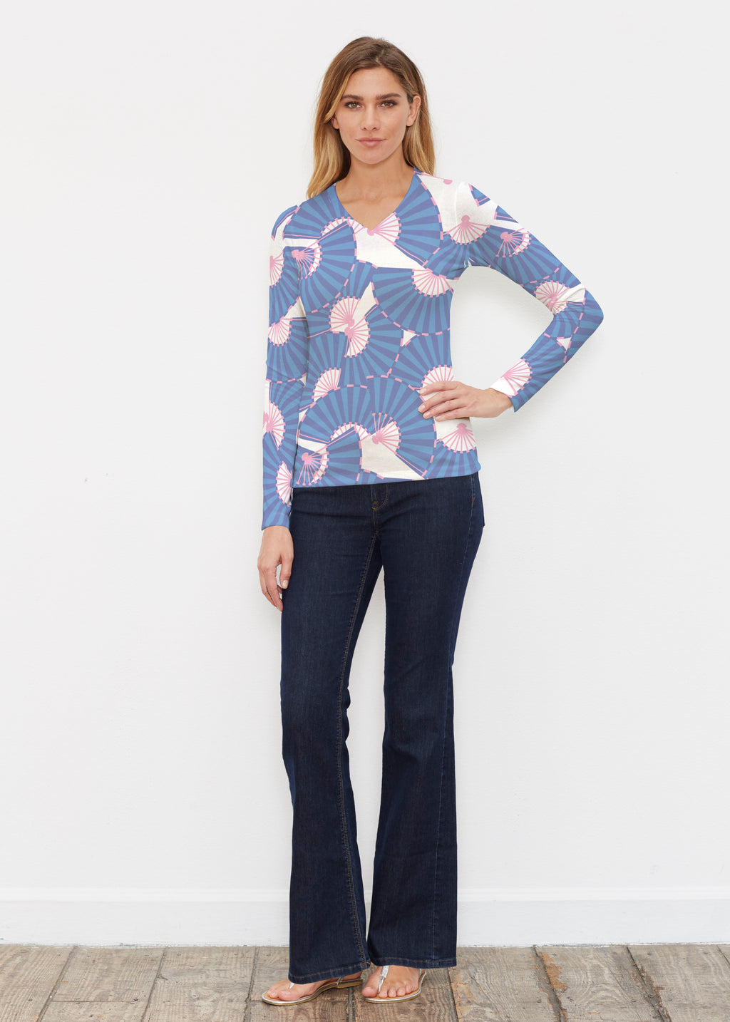 Jungle Warrior Blue (7850) ~ Butterknit Long Sleeve V-Neck Top