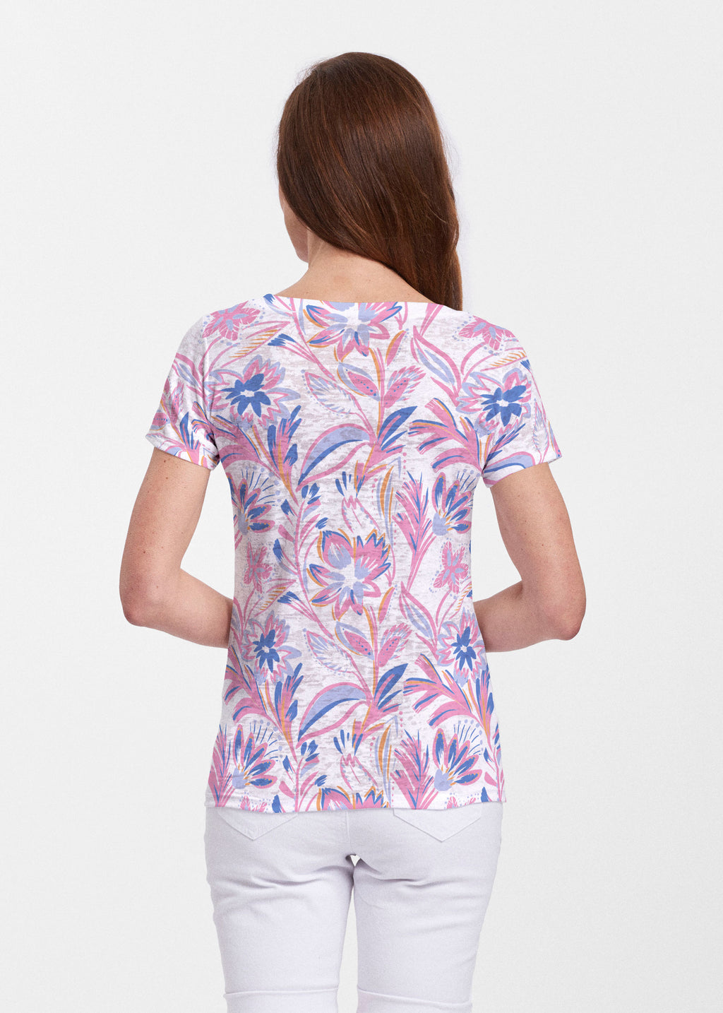 Floral Buds Pink (8032) ~ Sheer Short Sleeve Crew Shirt