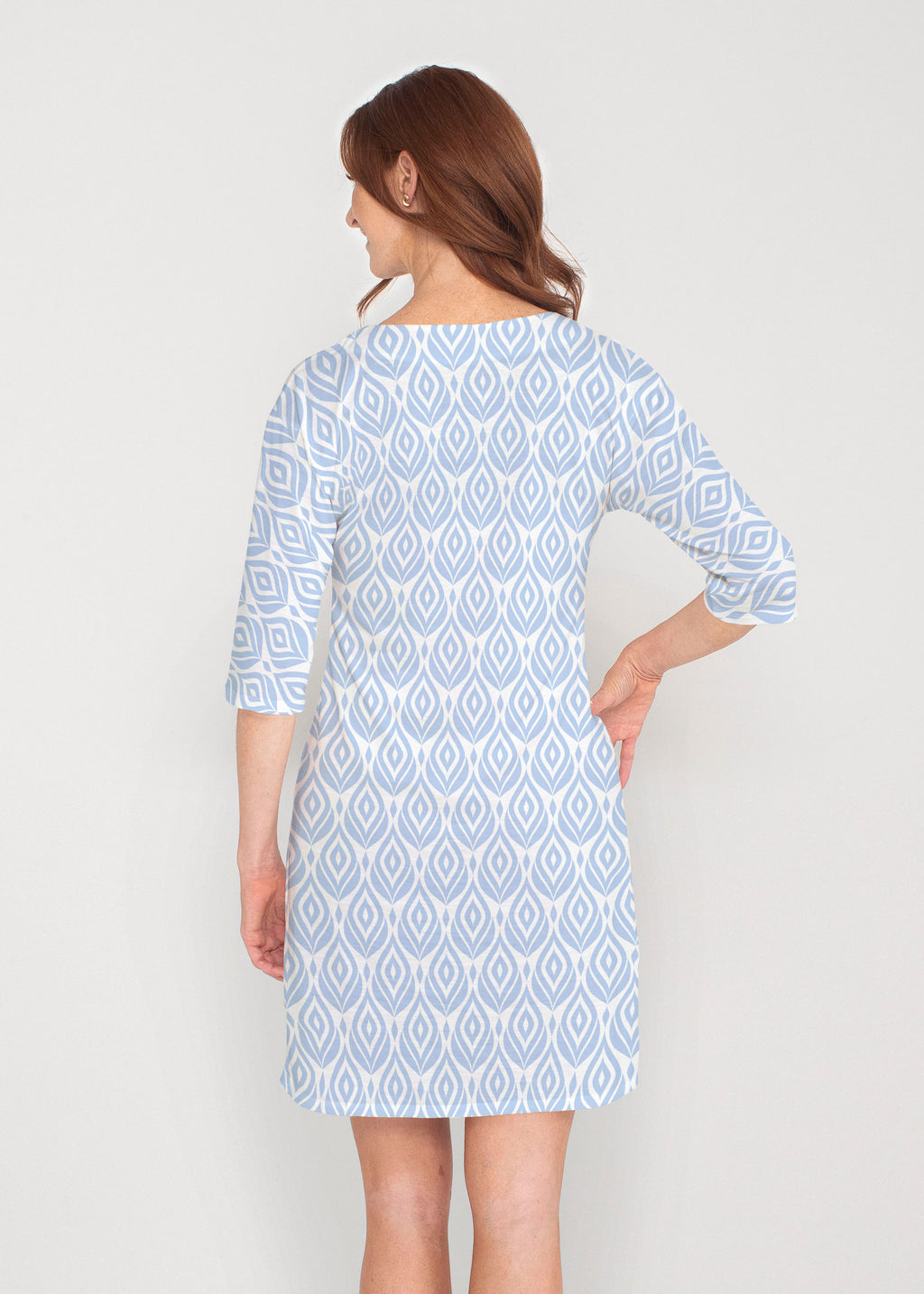 Be comfortable and fashionable all day in our light weight french terry fabric. This v-neck dress features loose 3/4 sleeves, drop shoulders and falls just at the knee.