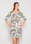 Leah Leaves (16258) ~ Drop Shoulder 3/4 Sleeve V-Neck Dress