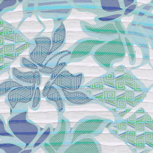 A geo design of blues and greens imitating "sails" of a boat with coordinating ikat sleeves.