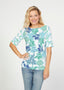 Shadow Aqua (7914) ~ Banded Elbow Sleeve Boat Neck Top