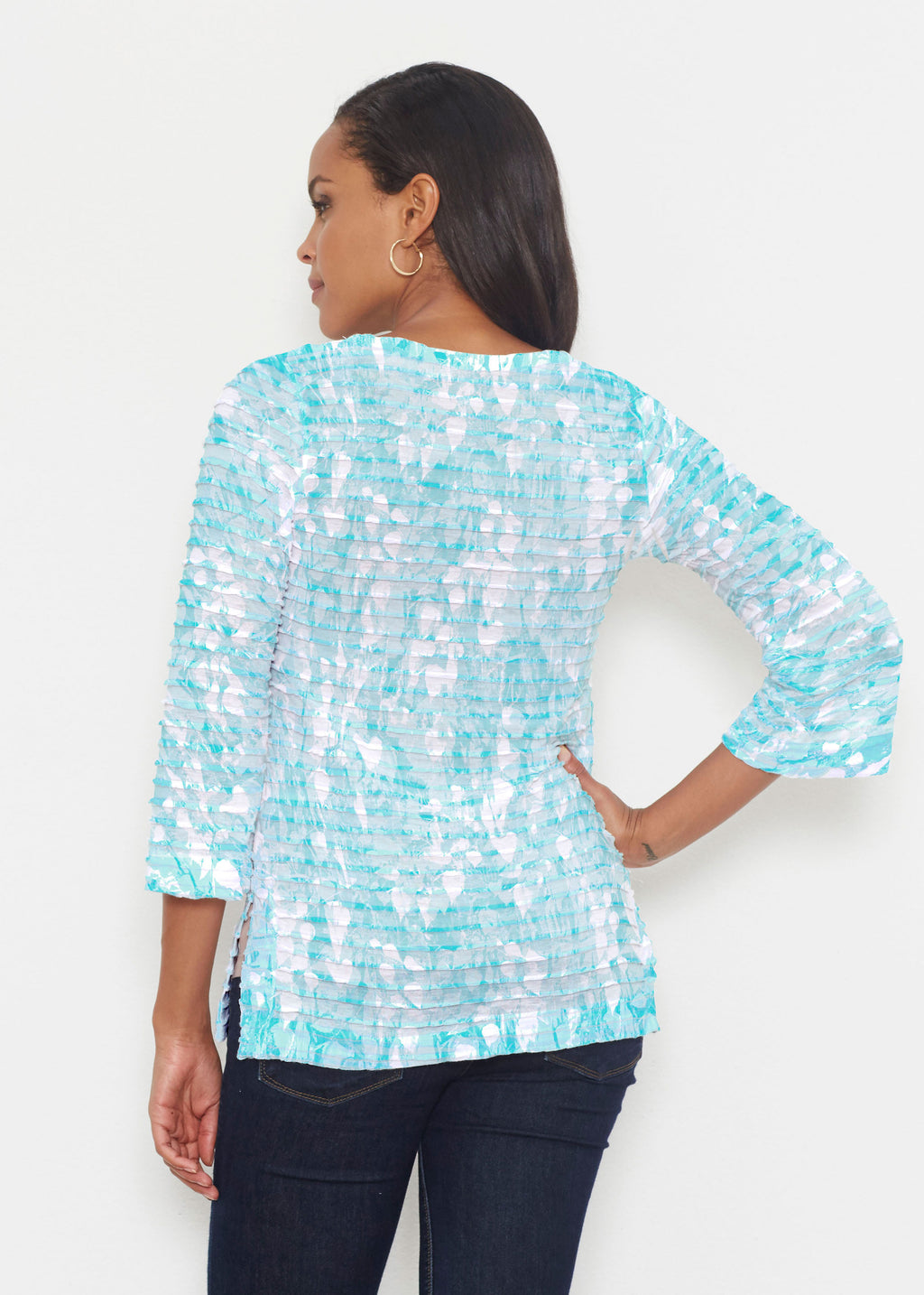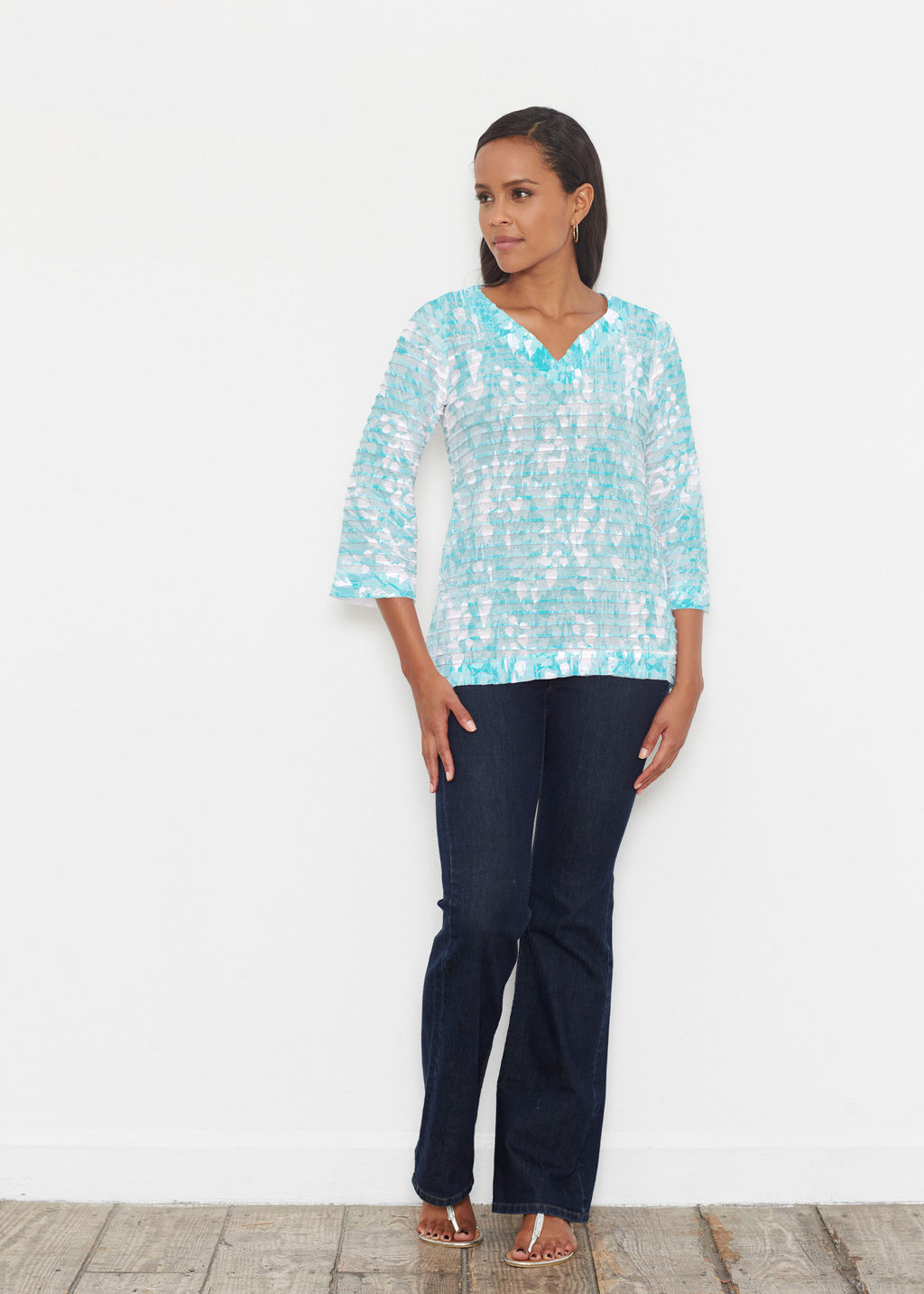 Shadow Aqua (7914) ~ Banded 3/4 Bell-Sleeve V-Neck Tunic