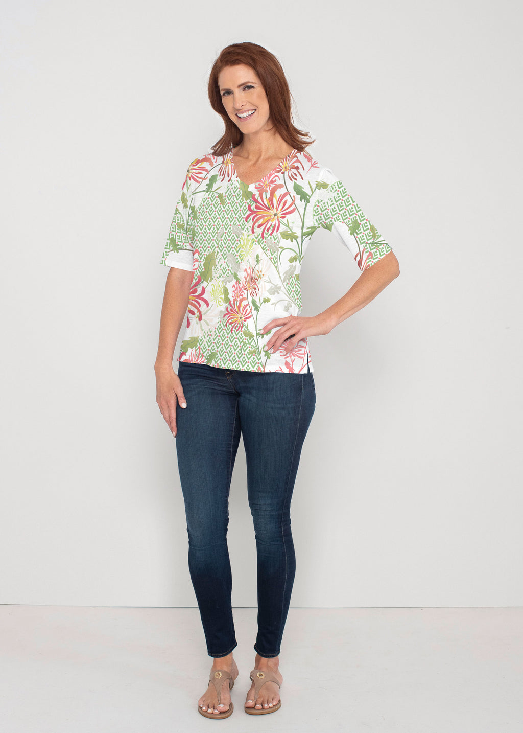 This Signature V-neck top combines the perfect for all day comfort with a relaxed fit and just the right sleeve length for stylish fun. Great on its own or the perfect layering piece.