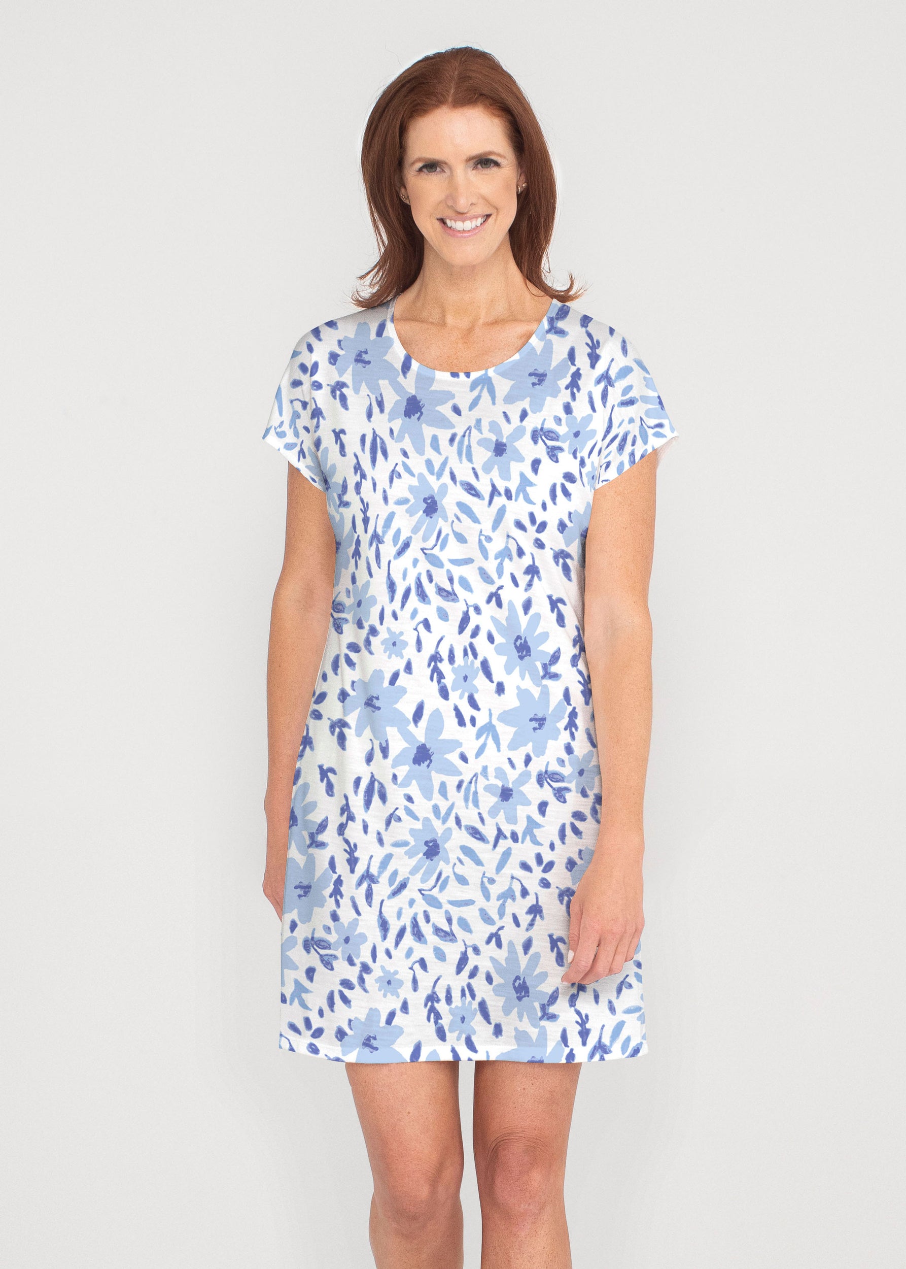 • May Flowers (8027) ~ French Terry Short Sleeve Crew Dress
