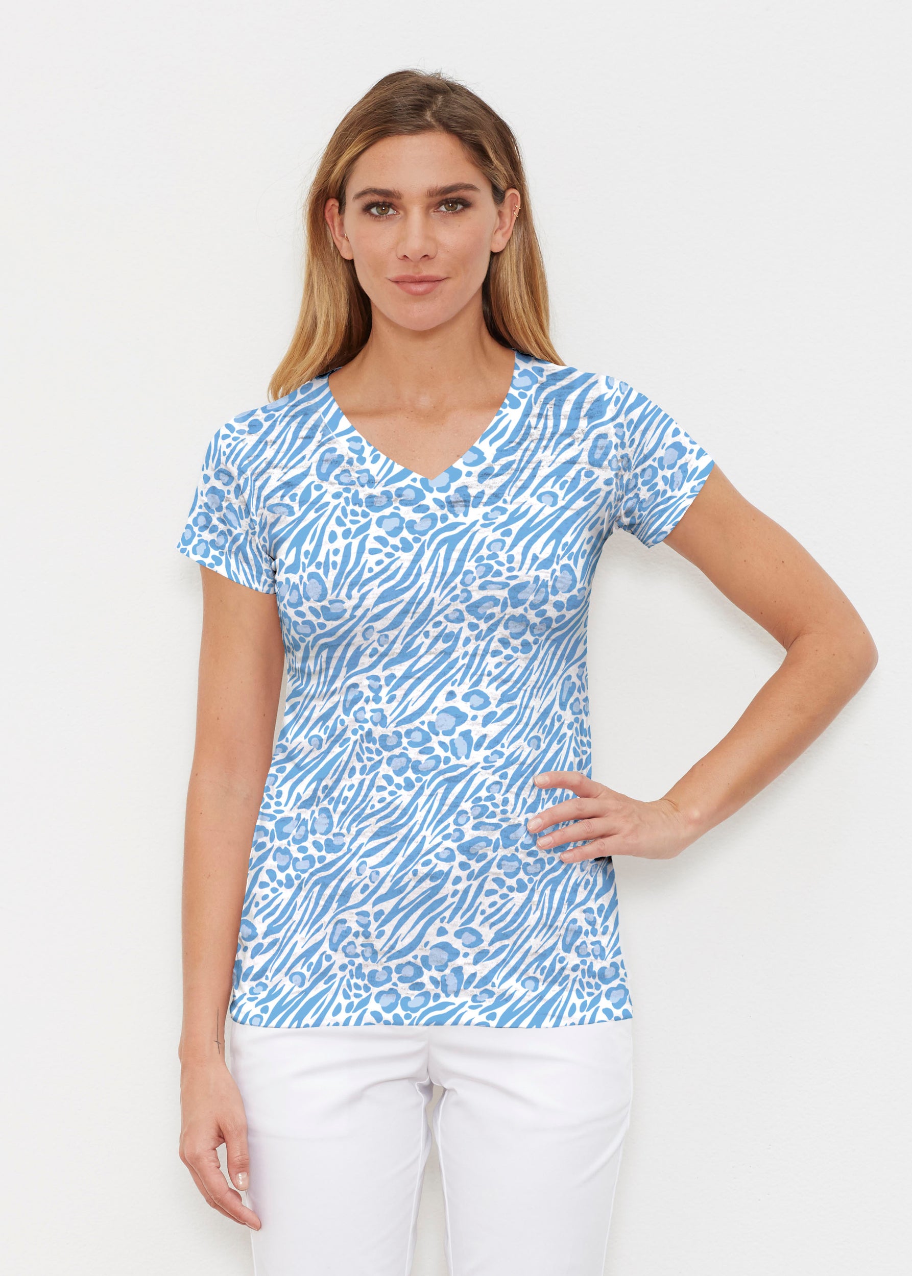• Leo Hotsy Totsy Blue (8166) ~ Signature Cap Sleeve V-Neck Shirt