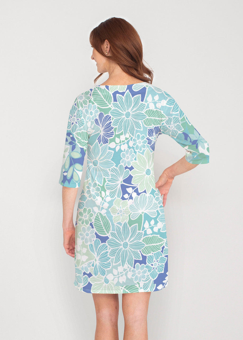 Floral Spritz Turquoise (22093) ~ Classic V-neck Swing Dress