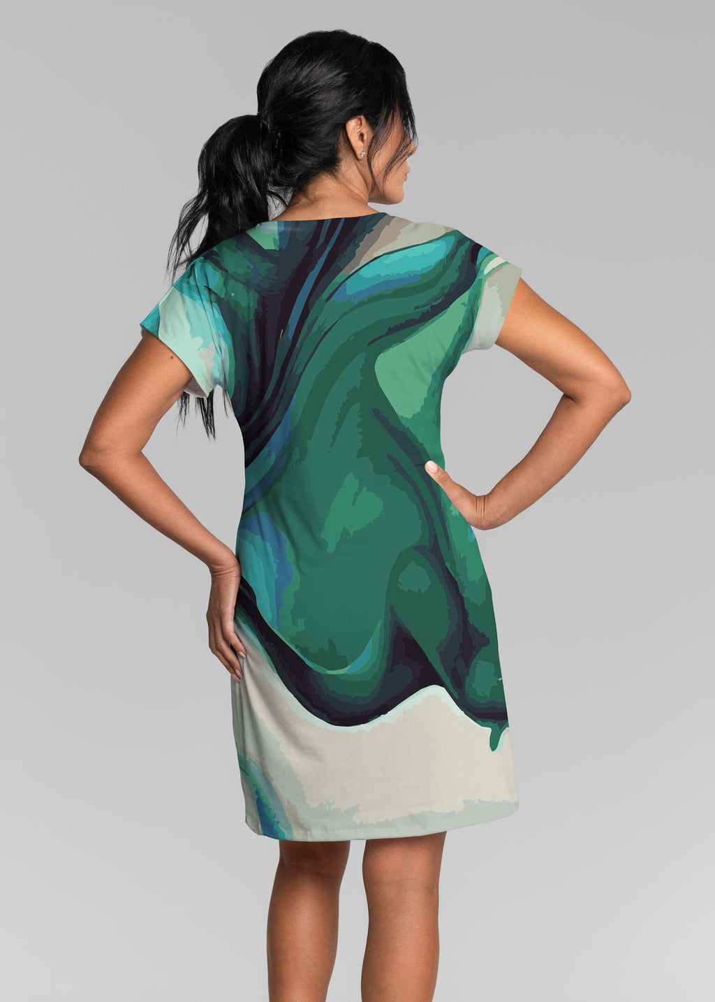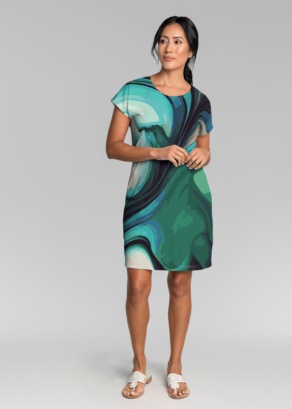 Our Lucy Tee Dress is effortless, versatile and soft to the touch -- perfect for all day style and comfort. A soft crew neckline, seamless sleeve and a relaxed shape made in our vibrant Lucy fabric ends above the knee.