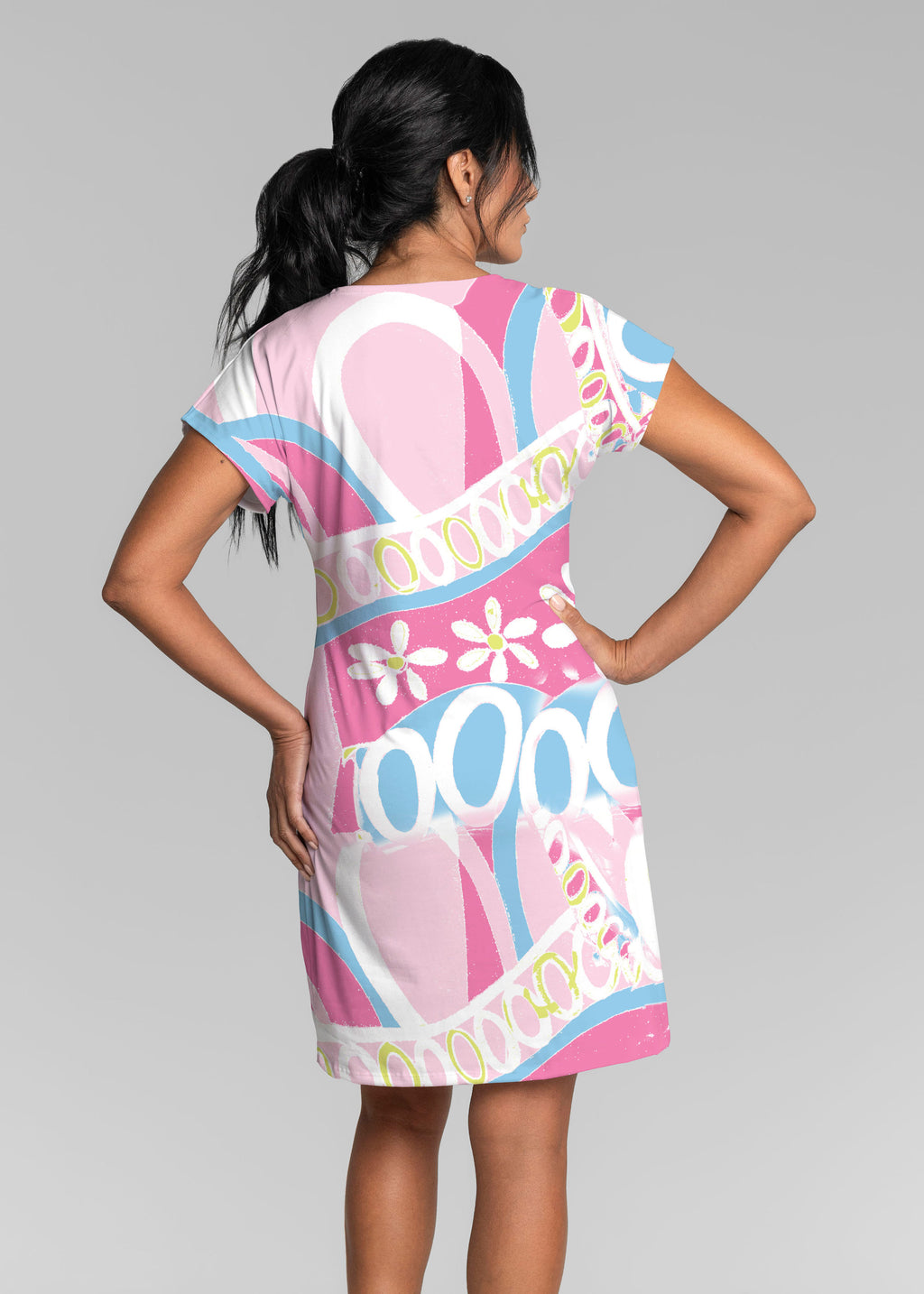Our Lucy Tee Dress is effortless, versatile and soft to the touch -- perfect for all day style and comfort. A soft crew neckline, seamless sleeve and a relaxed shape made in our vibrant Lucy fabric ends above the knee.