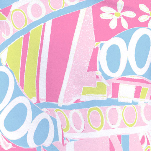 A vibrant and nostalgic 70s-inspired geoprint design that captures the essence of summertime. The playful combination of pinks and aquas creates a lively and refreshing color palette, reminiscent of clear skies and tropical waters.