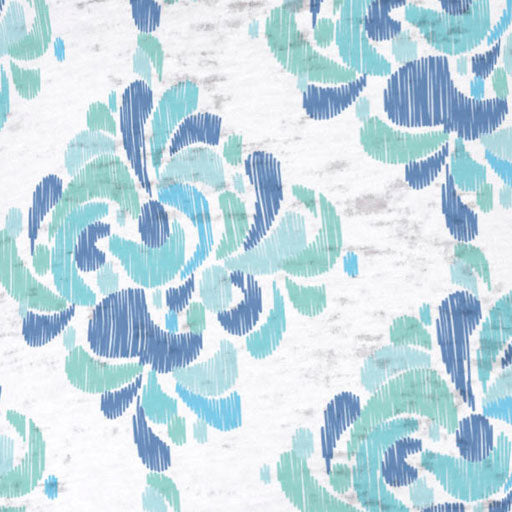 Beautiful shades of blue, aqua, turquoise and teal in captivating brushed baroque ornaments with a smaller and more dense pattern on the forearms. Designed by Susan Werner.