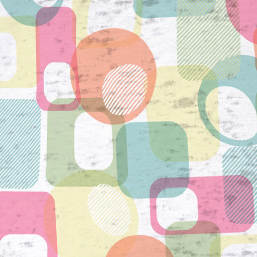 An abstract geo print with three different designs combined into this stunning print with pink, aqua, green and yellow. Designed by Diane Kappa.