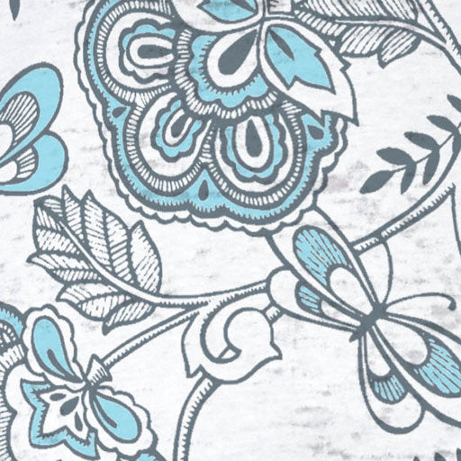 Beautiful floral print in navy and aqua with contrasting sleeves designed by Diane Kappa.