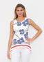 Celebrate the season with fun florals in red, white and blue. Designed by Natalie Neto.