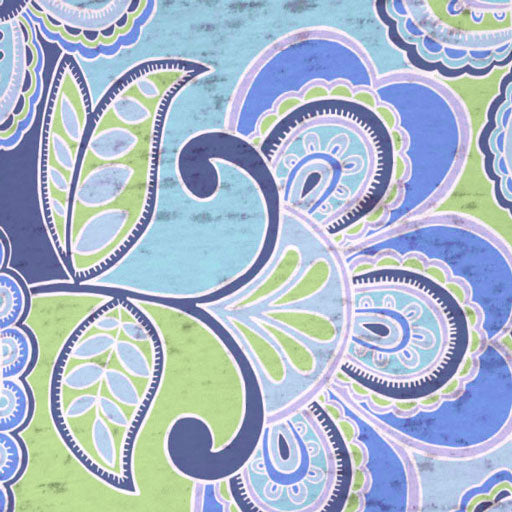 Fanciful blue, lime and turquoise print with contrasting front and back print designed by Diane Kappa.