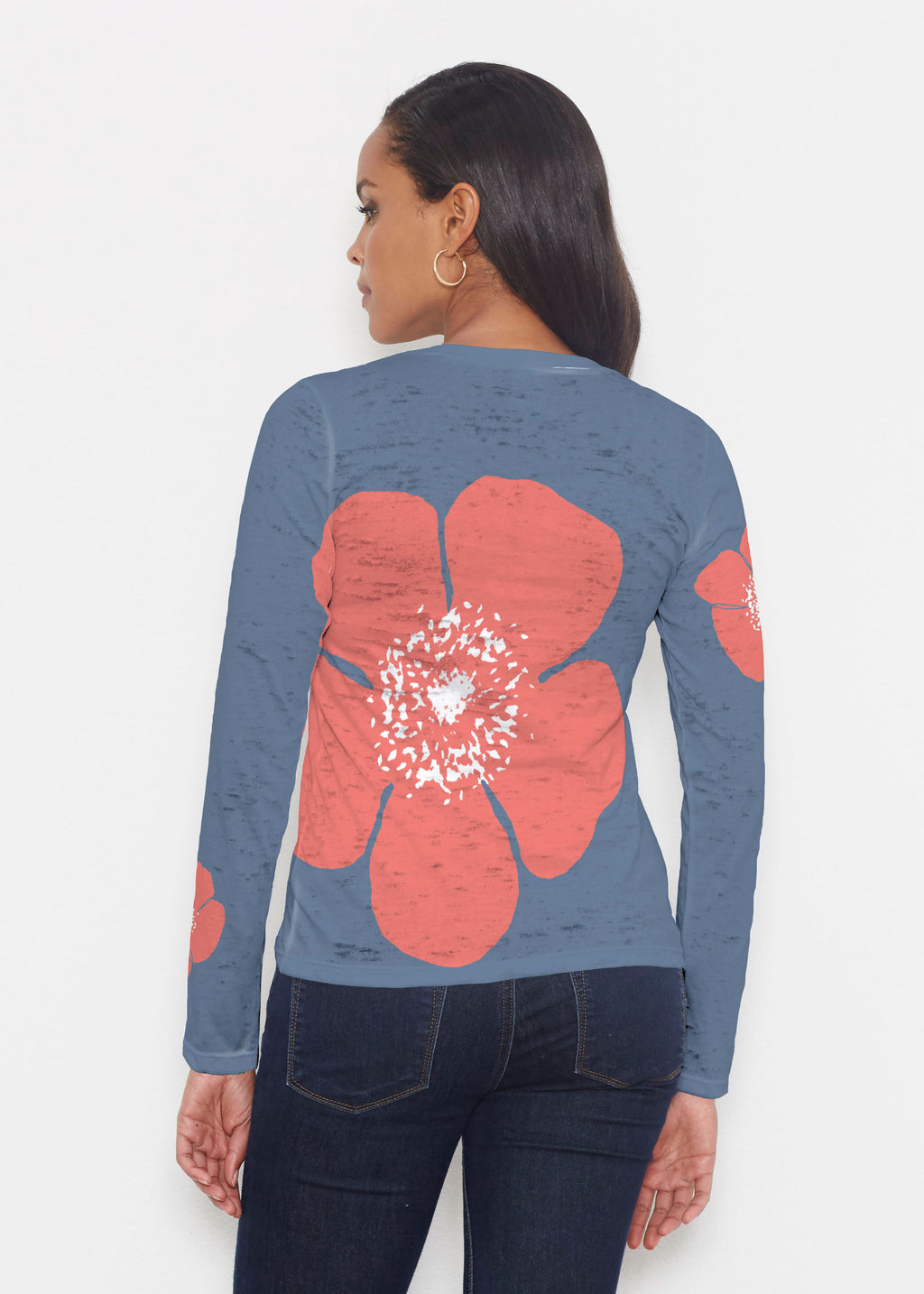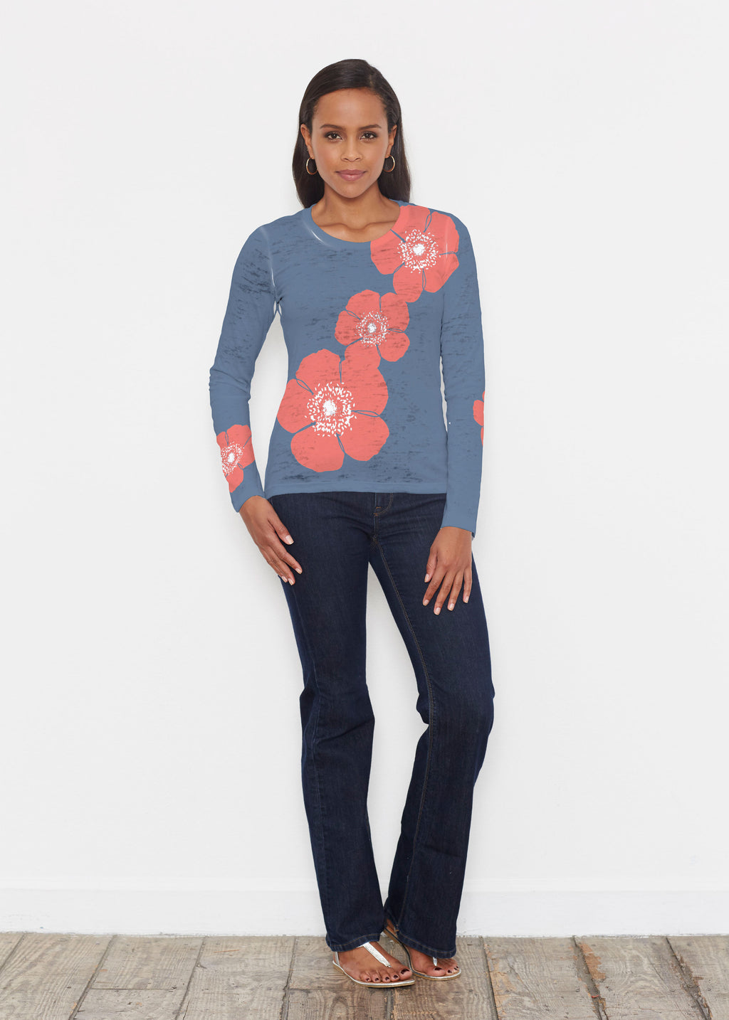 Our popular long sleeve tee is casual and fun in our Signature lightweight burn-out blend. This tee features a relaxed fit, crew neck, and long sleeves.