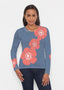 This print features small poppies on the front with a large poppy on back in navy and red. This classic favorite designed by Susan Werner.