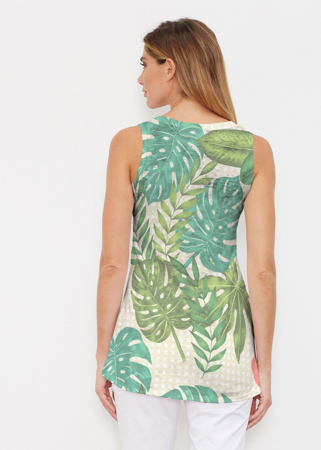This tank is the perfect combination of an elegant shape with a sporty look. A high-low cascading hemline falls loosely over the hip in our Signature burnout fabric. No sleeves and a shallow scoop neckline give this tank its sporty vibe. -- Your one-of-a-kind garment is created using all-over soft garment sublimation printing. Selected designs are individually printed into your garment. Cotton/Polyester blend.