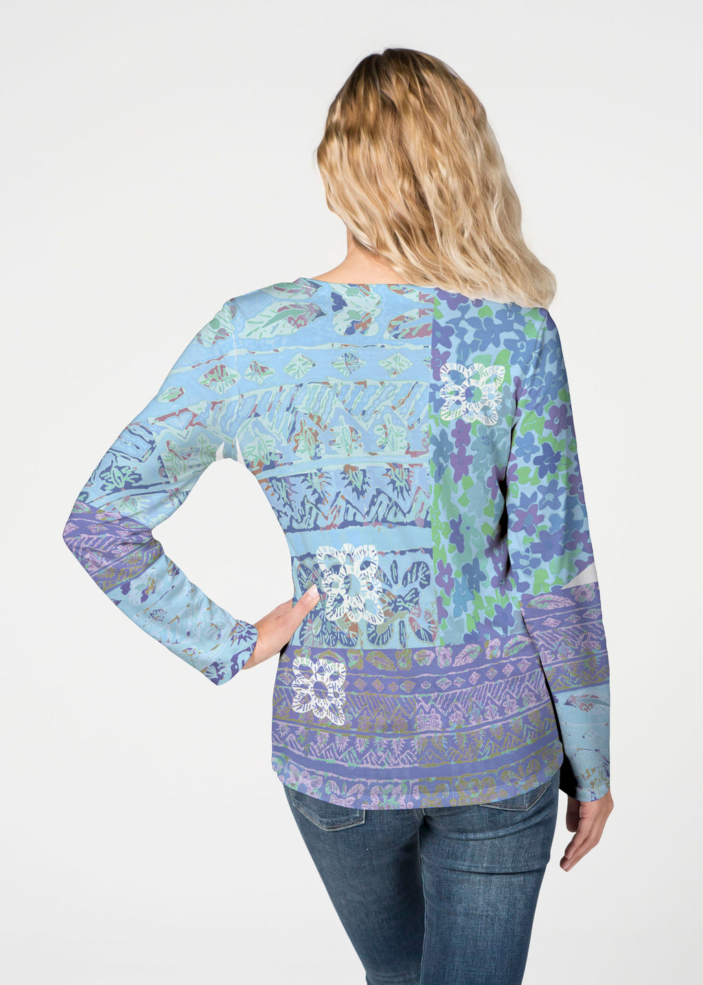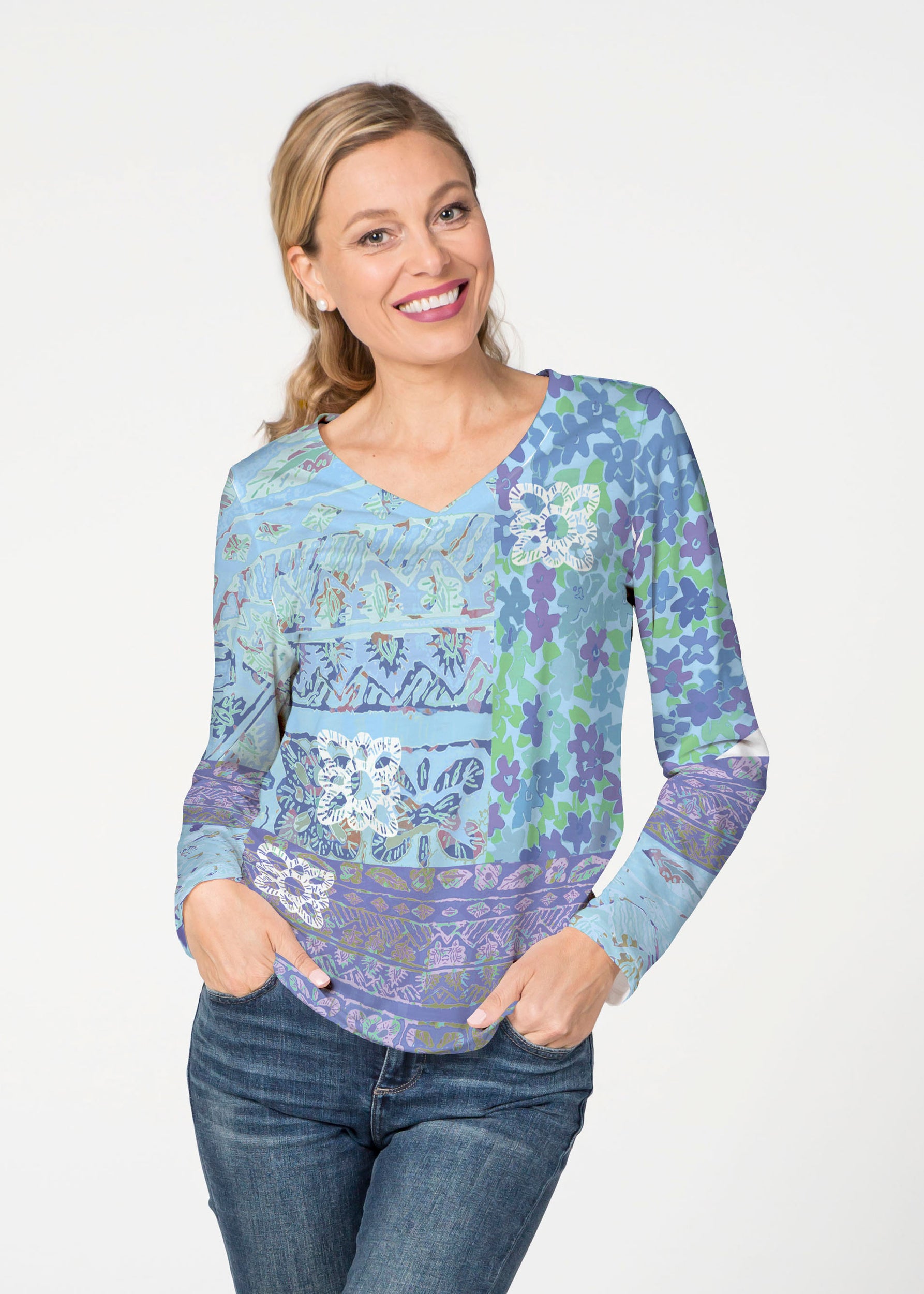 Our French Terry top is comfort and style all in one! Our French Terry top that features long sleeves, a V-neck and a more fitted silhouette that looks stylish in any print.