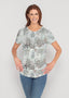 Painted Dots (8020) ~ Banded Elbow Sleeve Boat Neck Top