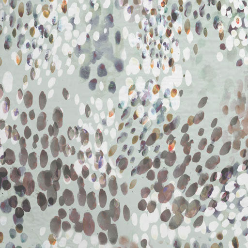 Delicate hand painted dots in shades of browns and whites on a soft mint canvas by Susan Werner.