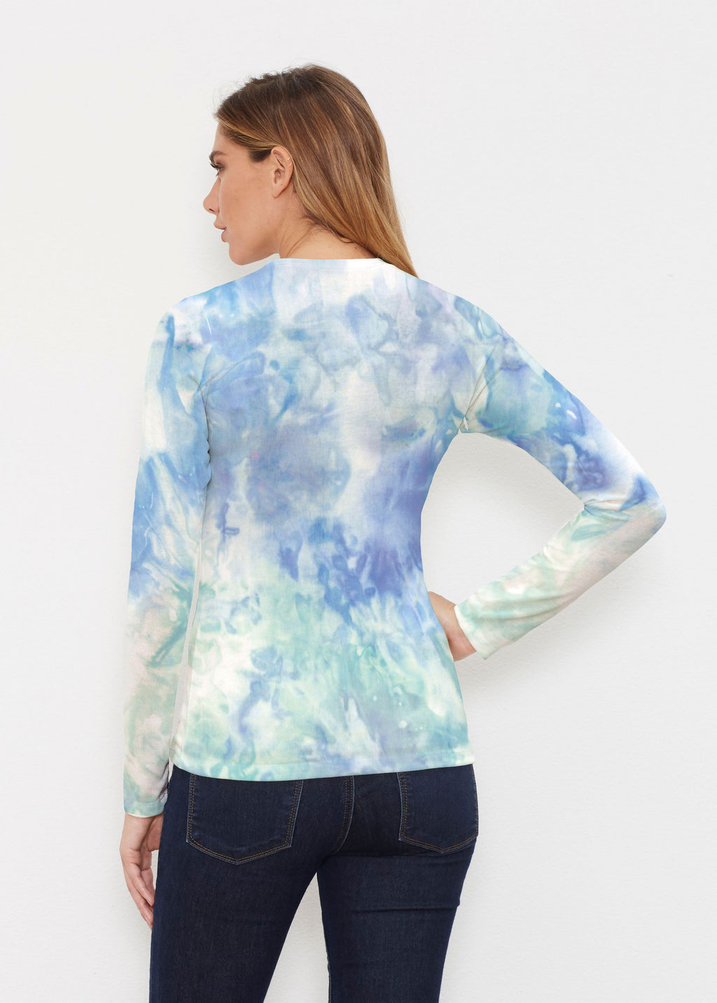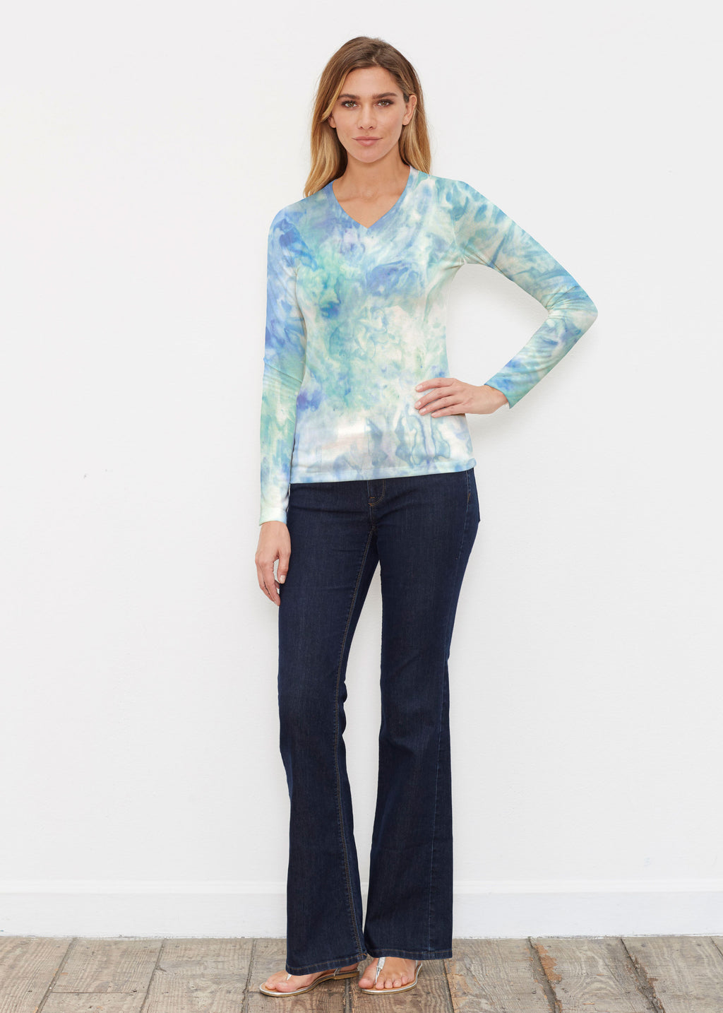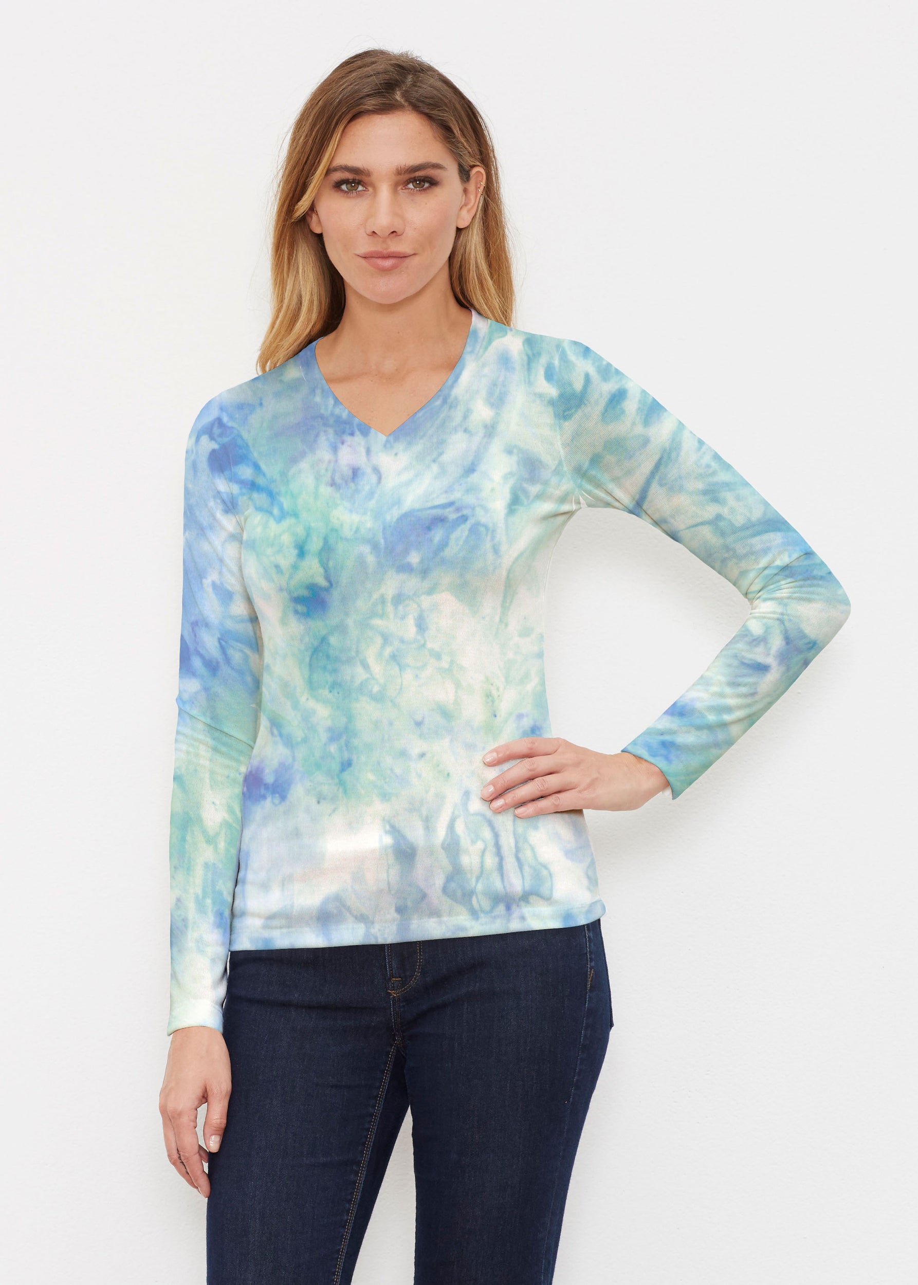 Jungle Warrior Blue (7850) ~ Butterknit Long Sleeve V-Neck Top