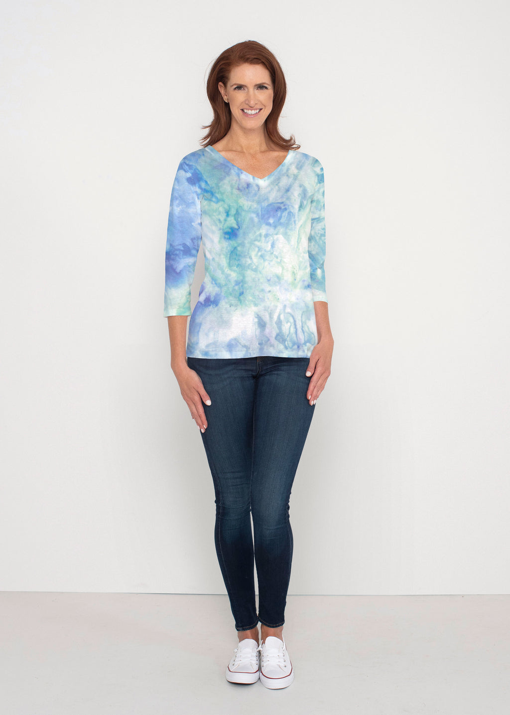 Our casual Signature 3/4 sleeve has a subtle v-neck and is perfectly proportioned and a new best-selling favorite. This relaxed fit is not only flattering but you get to pick that special print for any mood.