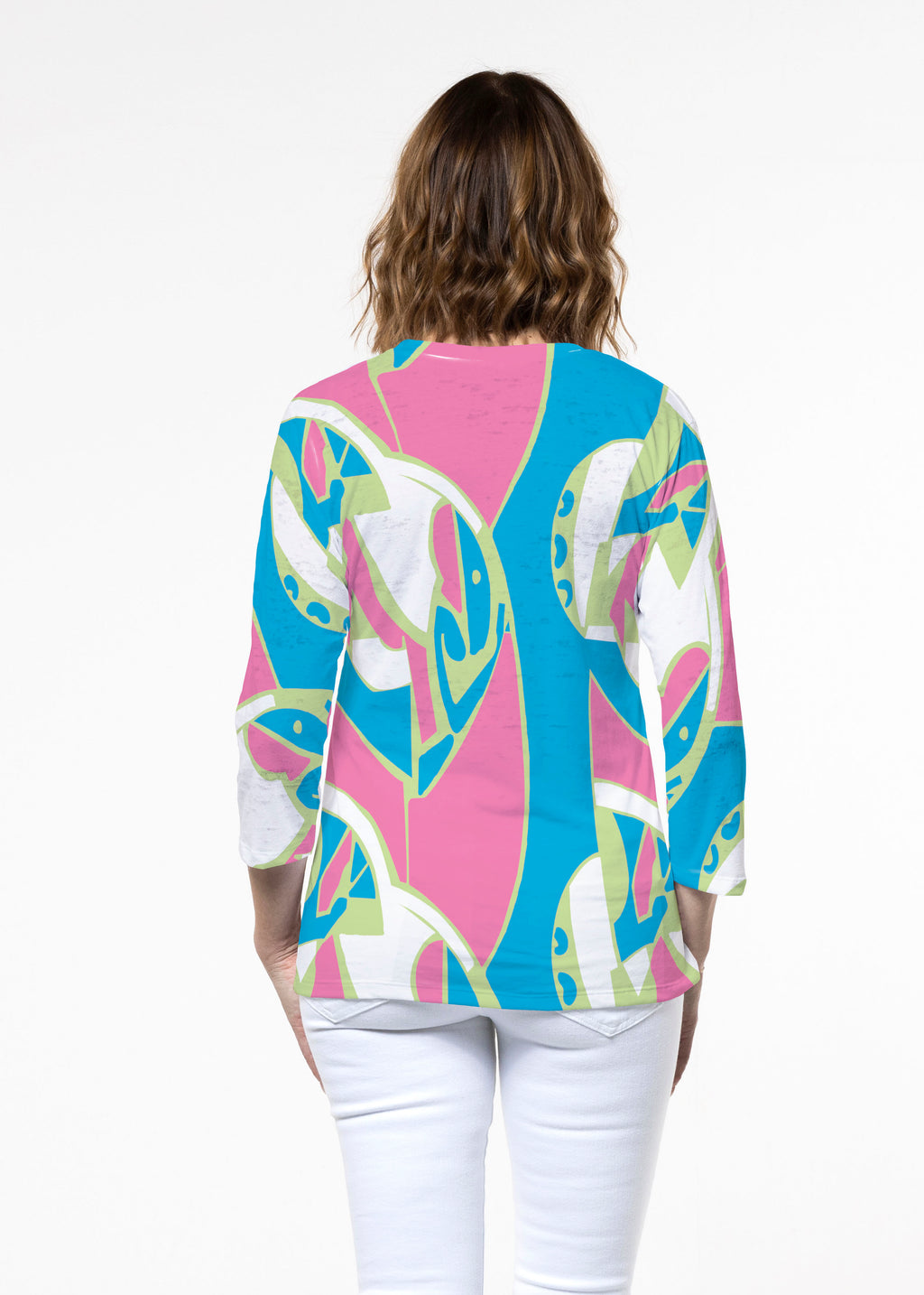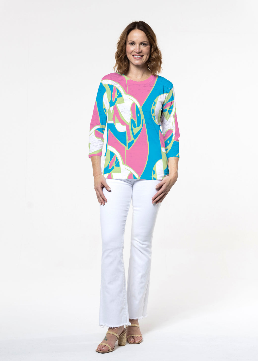 Flattering Signature fabric 3/4 sleeves and a crew neck are perfectly proportioned and more of a relaxed fit.