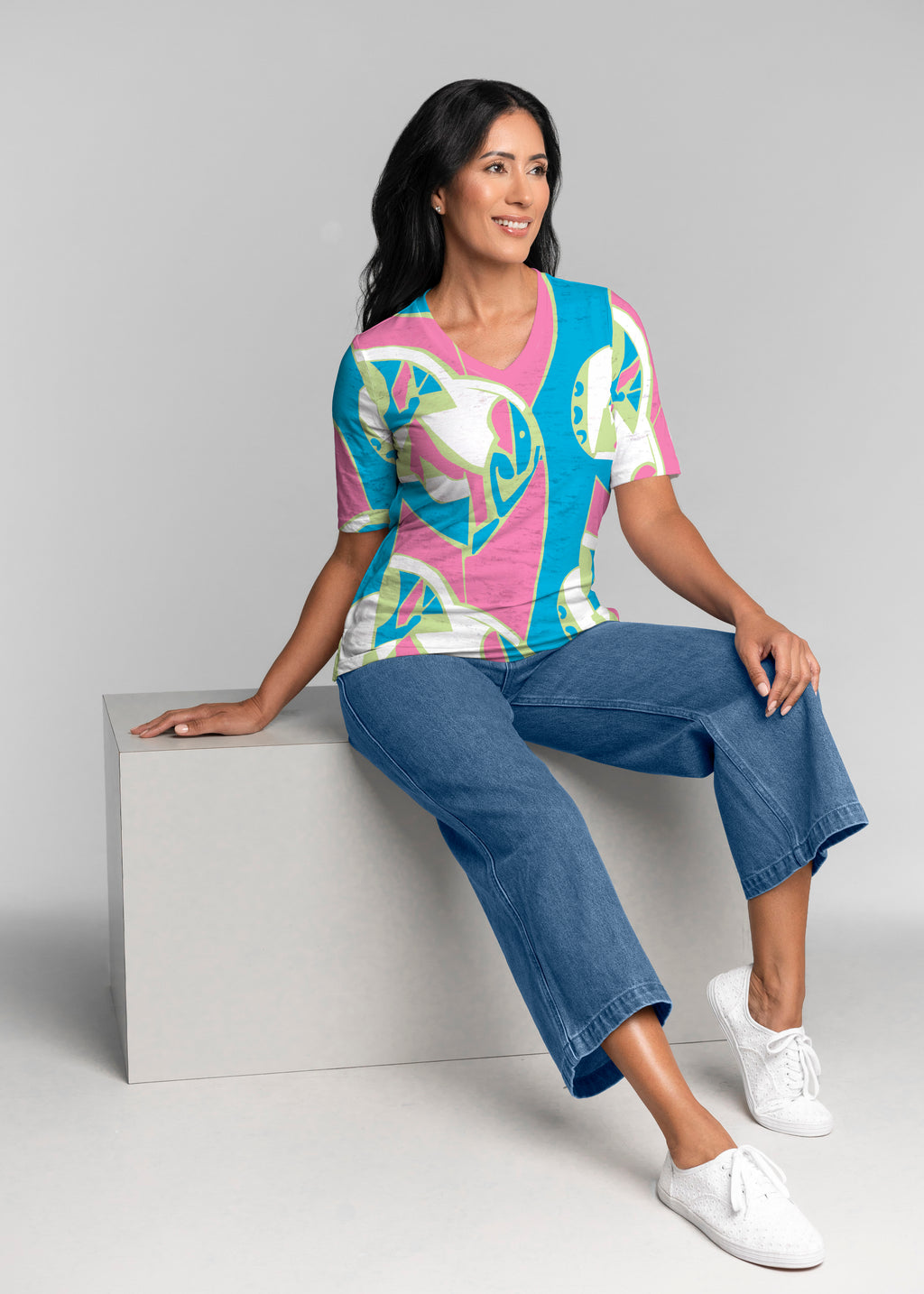 • Art Deco (26039) ~ Signature Elbow Sleeve V-Neck Top