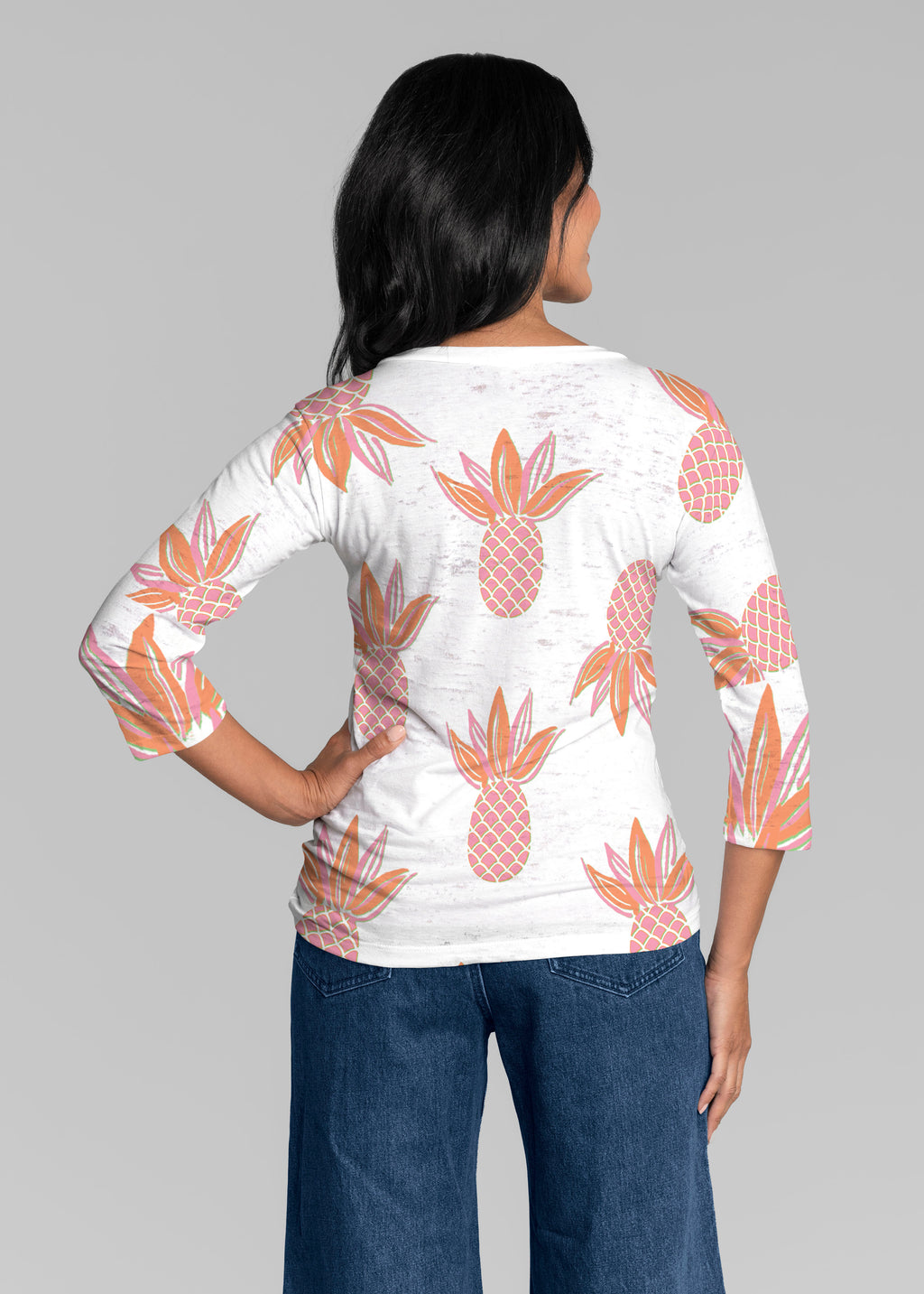 Our casual Signature 3/4 sleeve has a subtle v-neck and is perfectly proportioned and a new best-selling favorite. This relaxed fit is not only flattering but you get to pick that special print for any mood.