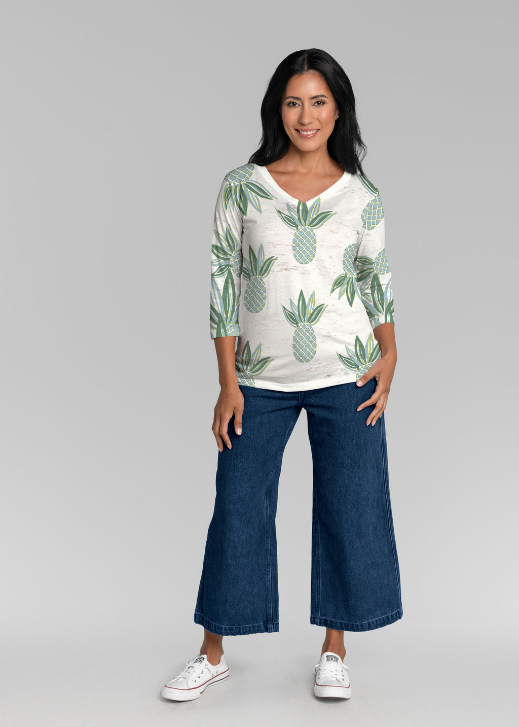 Our casual Signature 3/4 sleeve has a subtle v-neck and is perfectly proportioned and a new best-selling favorite. This relaxed fit is not only flattering but you get to pick that special print for any mood.