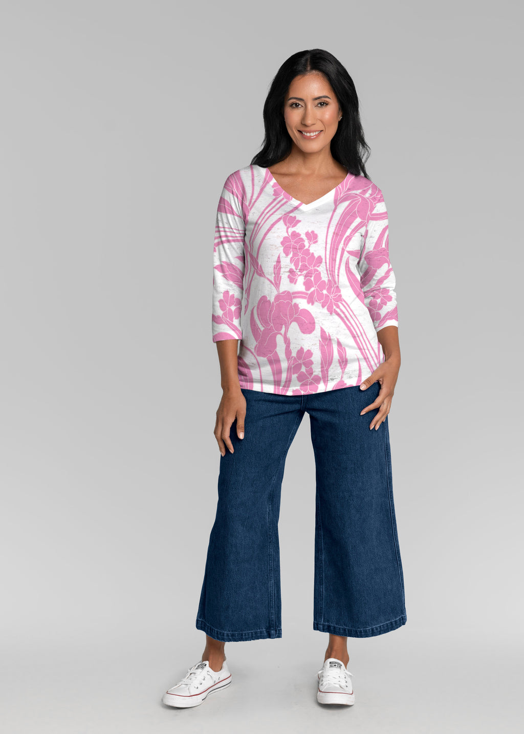 • Iris and Vine Pink (26050) ~ Signature 3/4 Sleeve V-Neck Top