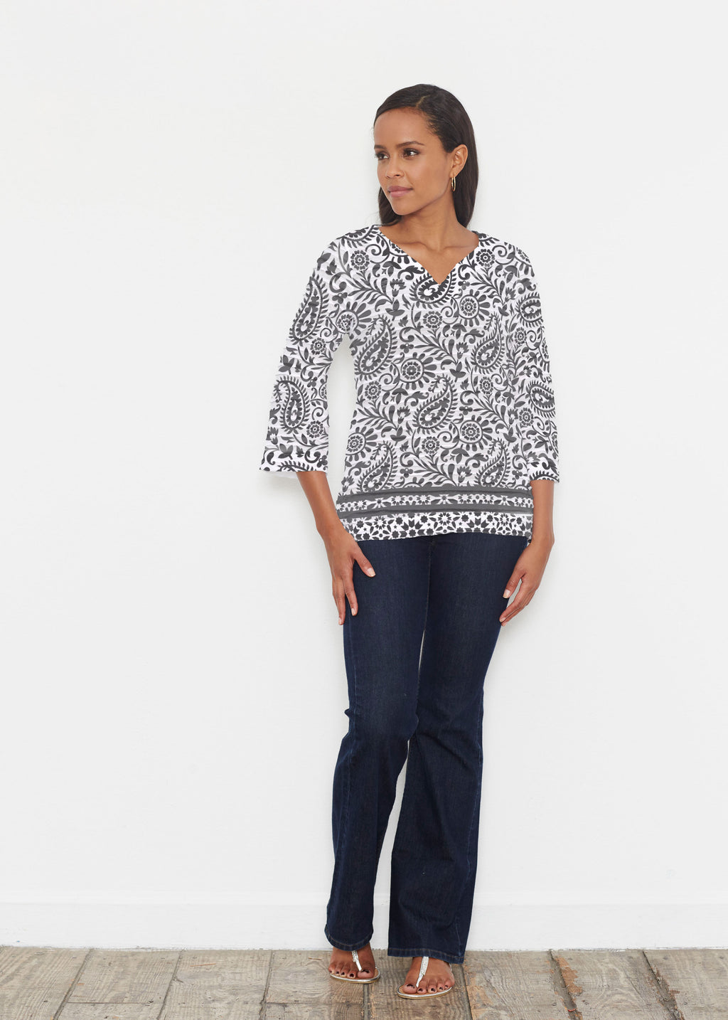 Bali Batik (26003) ~ Banded 3/4 Bell-Sleeve V-Neck Tunic