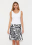 A black and white floral design laced with pops of a complimentary black and white geometric print.