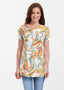 A stunning hand painted brushed floral print in yellow, orange, red, teal and blue designed by Susan Werner.