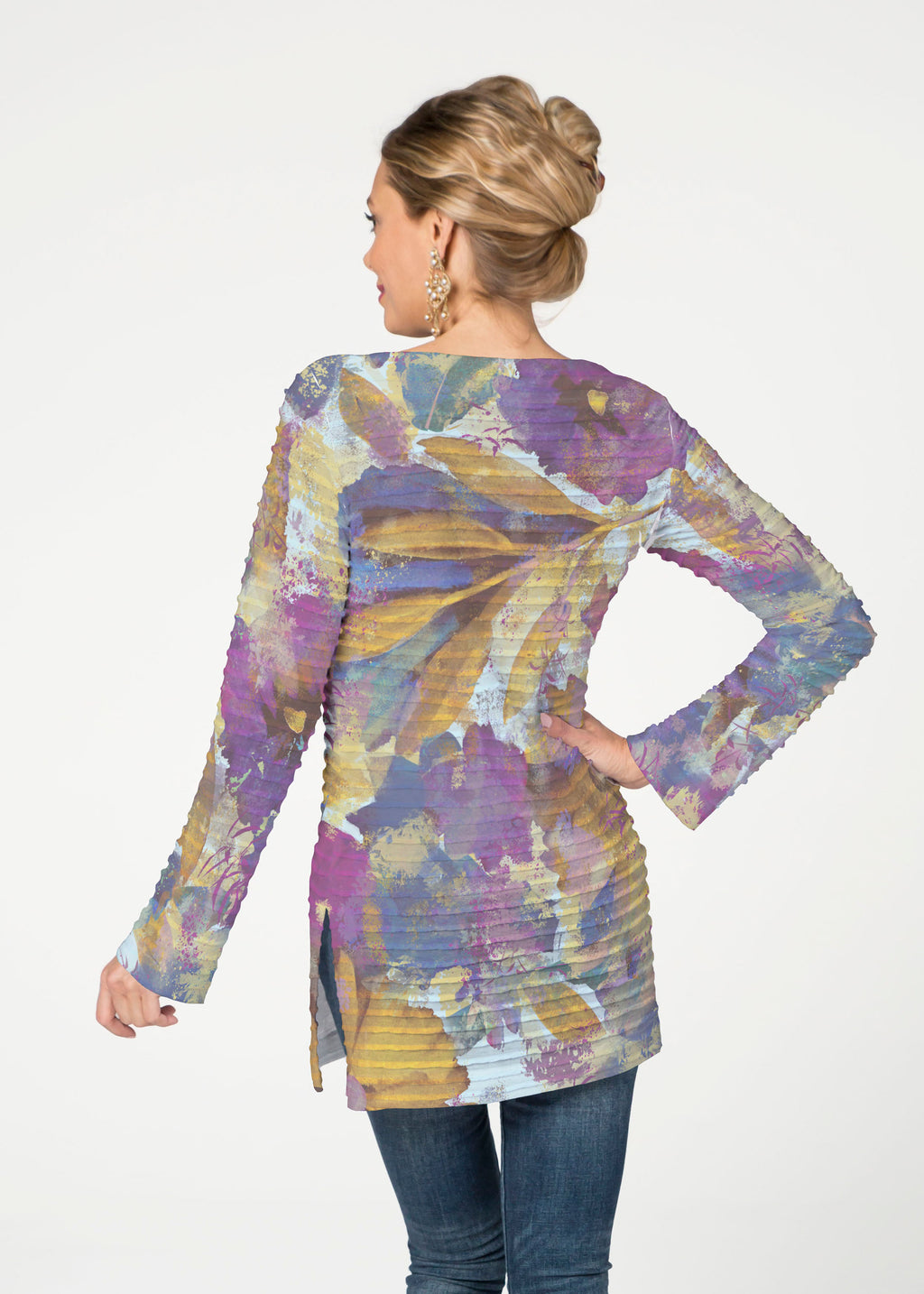 The Banded Boatneck Tunic has the soft pleated texture of our Banded fabric, making this a sophisticated, casual year round piece. A forgiving fit, side vents, with a relaxed full length sleeve combine for a flattering look. The hemline flows gently over the hip.