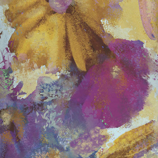A blend of rust, blue, and purple hues creates a captivating composition reminiscent of the changing leaves and blooming flowers in watercolor.
