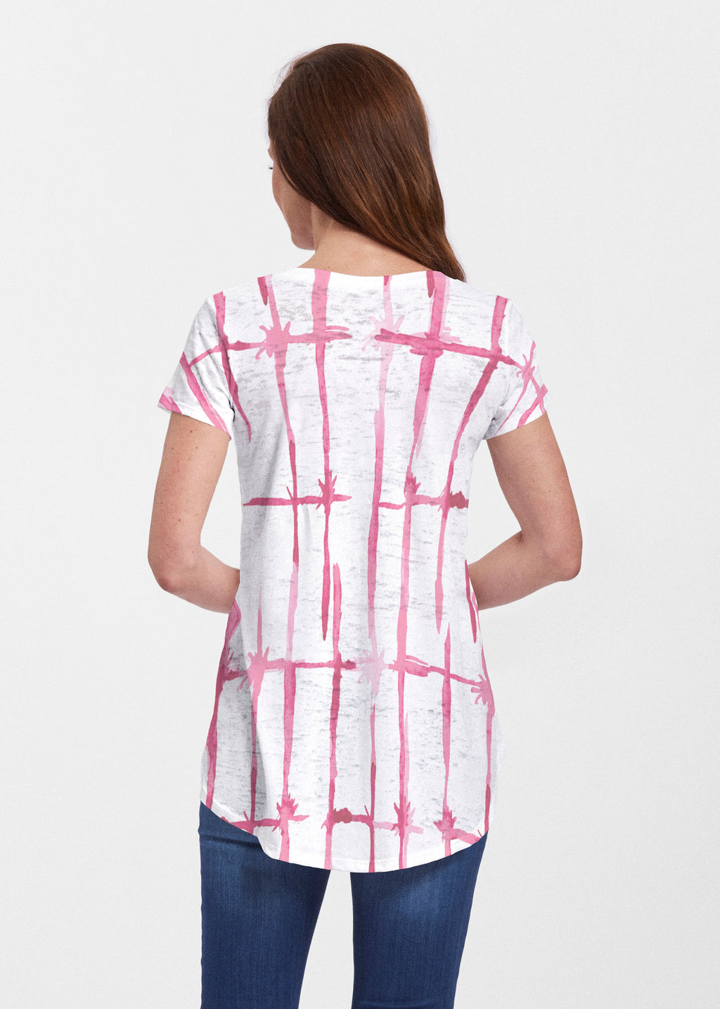 An effortlessly flattering tunic in our soft Signature burnout fabric featuring short sleeves and a scoop neck with a body that flows into a full, swinging shirttail hem.
