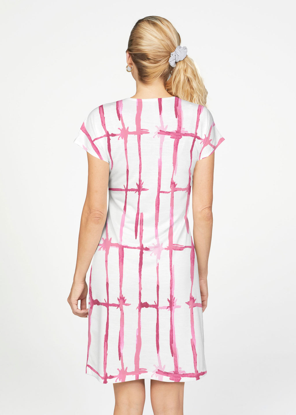 A stunning textured linear check design in pink and white, designed by Susan Werner.