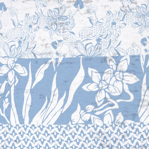 An intricate mix of prints in shades or blue and white make this patchwork print stunning, designed by Susan Werner.