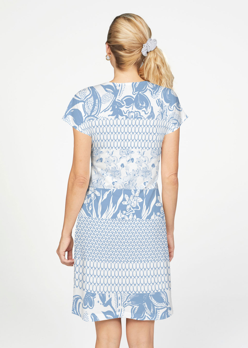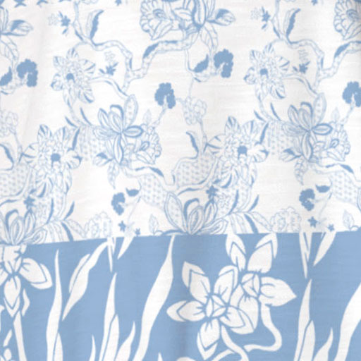 An intricate mix of prints in shades or blue and white make this patchwork print stunning, designed by Susan Werner.
