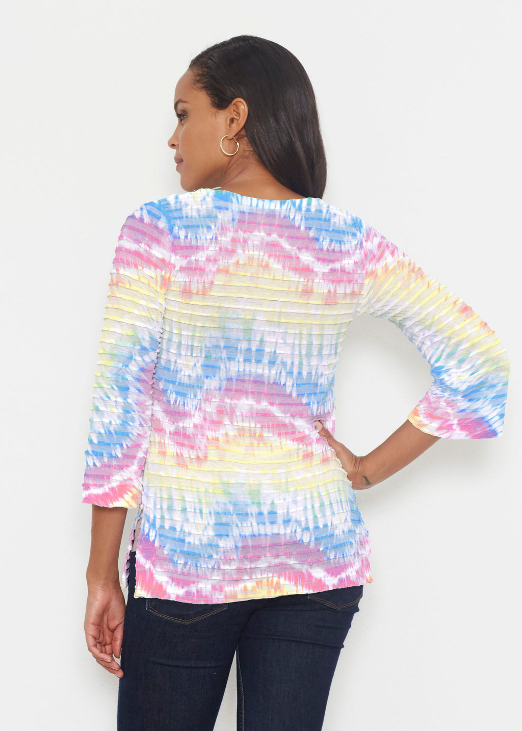 • Waves Tie Dye (7896) ~ Banded 3/4 Bell-Sleeve V-Neck Tunic