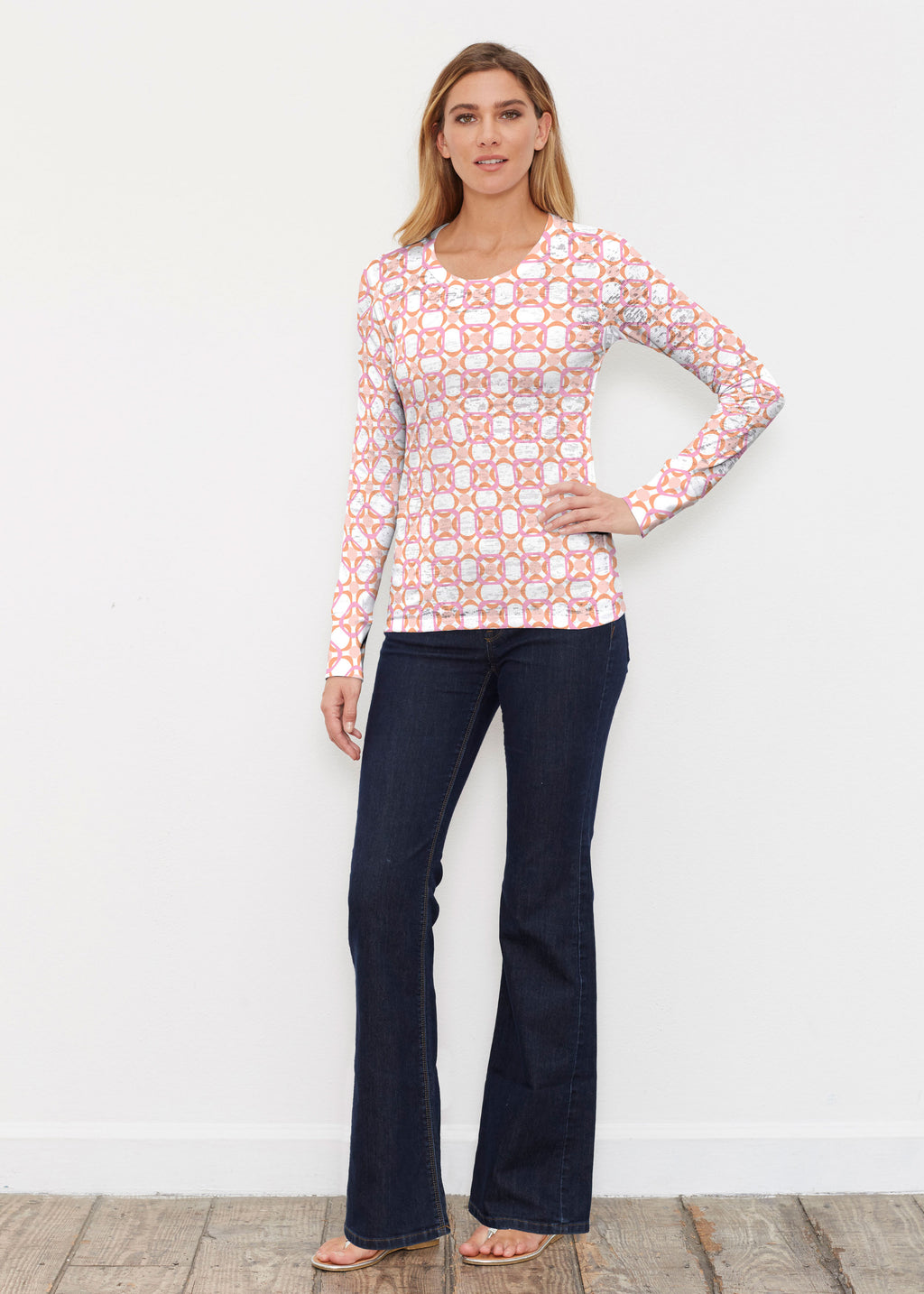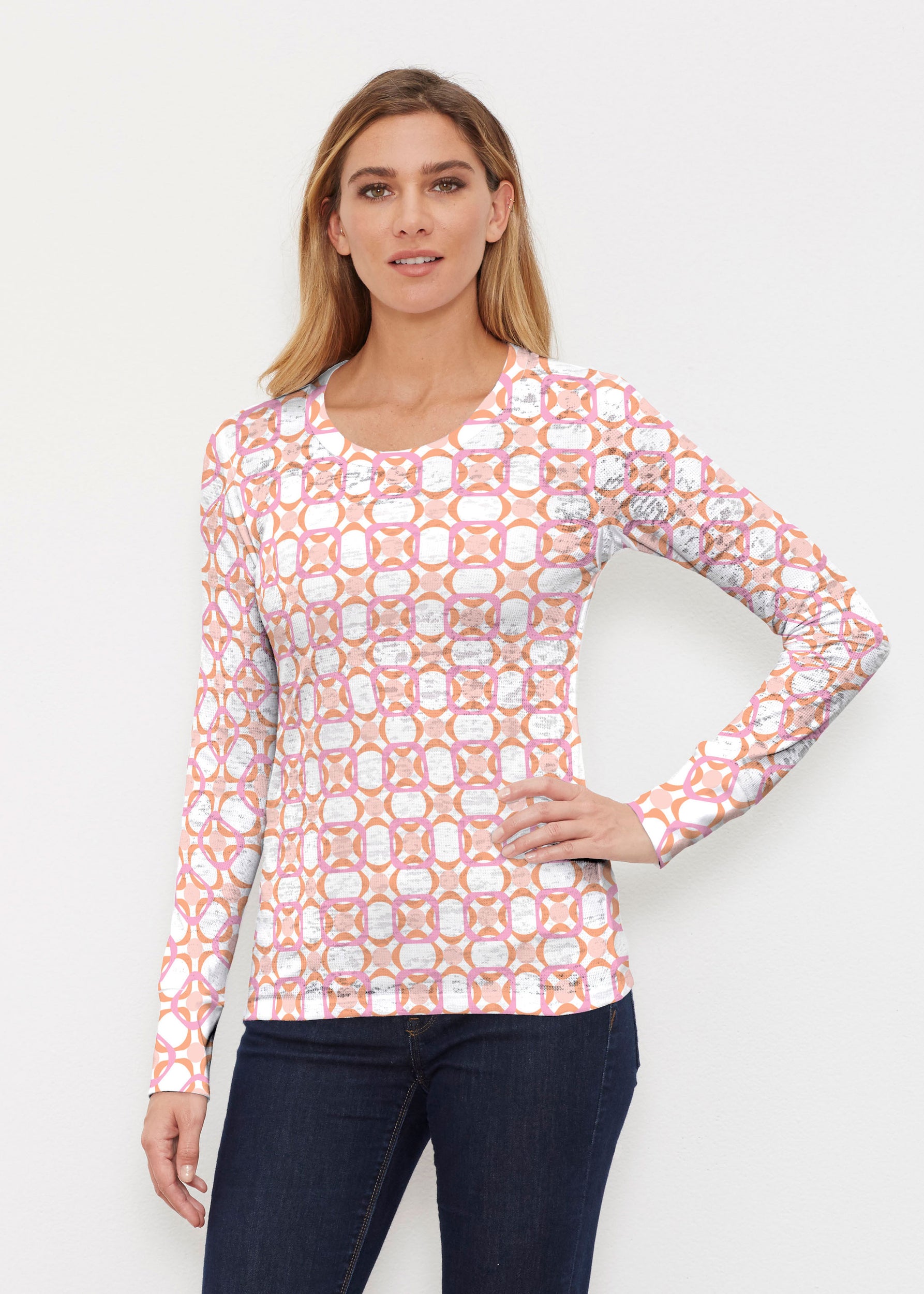 60's retro bangles and dots print in perfect pinks and peaches by Susan Werner.