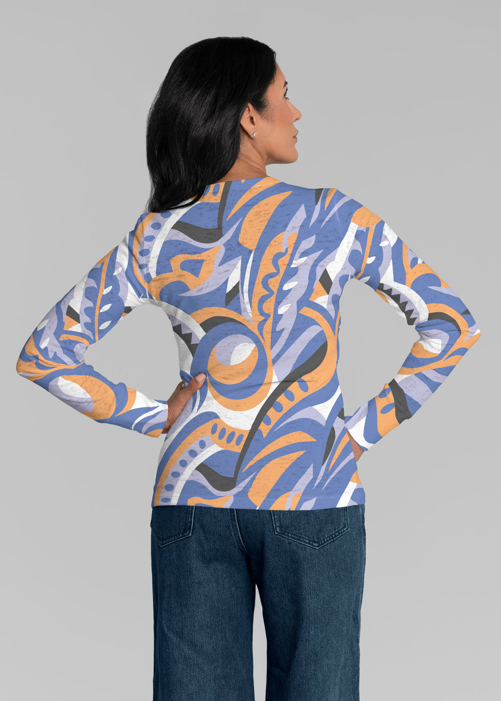 Iris and Vine Blue (26049) ~ Thermal Long Sleeve Crew Shirt